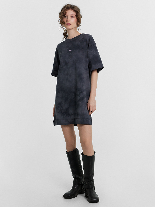 Платье женское серое с эффектом фаст-дай и надписью "Здесь сейчас я"