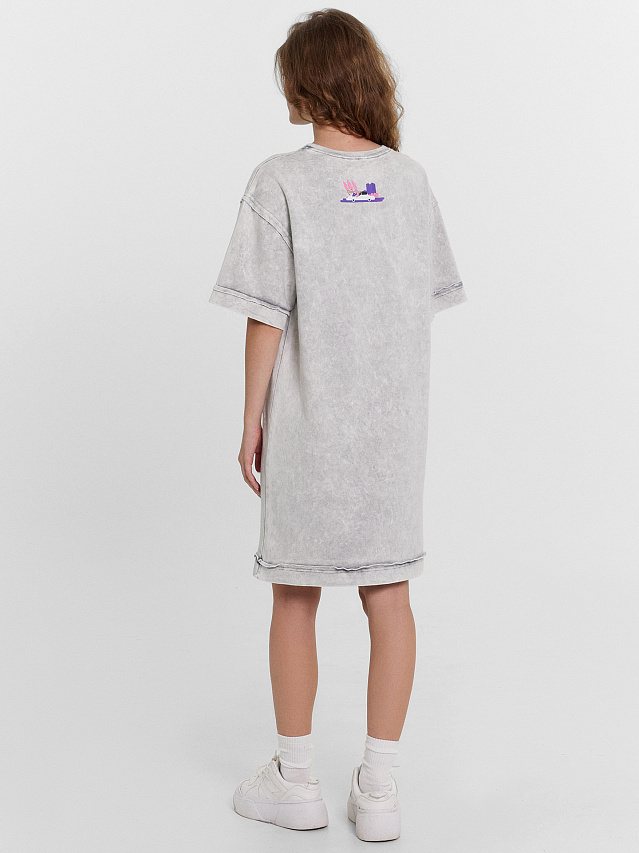 Модное женское платье мини из высококачественного 100% хлопка - идеальное сочетание комфорта и стиля. Выполнено в оверсайз силуэте. Короткие рукава делают его лучшим вариантом для теплых летних дней, а также позволяют легко комбинировать его с любыми вещами. Плечо спущено, пройма углублена. Идеальный выбор для тех, кто ценит свободу движений и хочет выглядеть отлично в любой ситуации. Сочетайте его с кедами для casual образа. Эта модель — одно из уникальных изделий, которые проходят этап дополнительной обработки. Благодаря обработке "эйсид", каждая вещь отличается своим особенным и неповторимым рисунком. Рекомендуем!