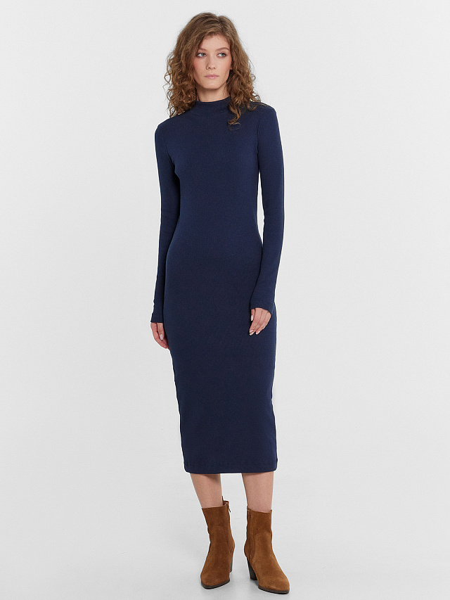 Однотонное платье женское с длинными рукавами, прилегающего силуэта из высококачественного хлопка в рубчик. Вырез круглый, с воротником-стойкой. Рукава длинные, облегающие. Длина модели чуть ниже колена. Отличное базовое платье, которое станет основой вашего стильного образа. Такое платье точно не будет ждать своего часа на полке в шкафу. В осенне-зимний период так хочется надеть что-то максимально комфортное и уютное - эта модель именно такой вариант. Облегающее платье не стесняет движений, очень комфортное в носке. Идеально подойдет для прогулок, встреч с друзьями, свидания и похода в кино. Рекомендуем!