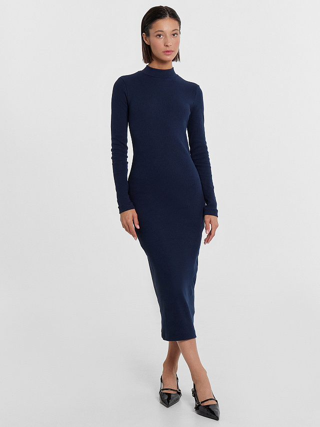 Однотонное платье женское с длинными рукавами, прилегающего силуэта из высококачественного хлопка в рубчик. Вырез круглый, с воротником-стойкой. Рукава длинные, облегающие. Длина модели чуть ниже колена. Отличное базовое платье, которое станет основой вашего стильного образа. Такое платье точно не будет ждать своего часа на полке в шкафу. В осенне-зимний период так хочется надеть что-то максимально комфортное и уютное - эта модель именно такой вариант. Облегающее платье не стесняет движений, очень комфортное в носке. Идеально подойдет для прогулок, встреч с друзьями, свидания и похода в кино. Рекомендуем!