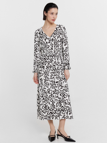 Элегантное длинное платье Mark Formelle станет стильным и универсальным дополнением вашего гардероба! Модель полуприлегающего силуэта сочетает в себе комфорт и изысканный дизайн, подходящий для различных случаев. Платье имеет V-образный вырез горловины, который подчеркивает линию шеи и декольте, добавляя нотку изящества. Эластичная сборка на талии создает акцент на фигуре, а длинные рукава с эластичной сборкой по краю придают нежности и утонченности. Расширяющийся к низу крой добавляет грациозности и движения, создавая великолепный силуэт. Изделие выполнено из ткани рашель, известной своей легкостью и эластичностью. Такой материал отличается нежностью и изысканным внешним видом, что делает его идеальным для создания элегантных и комфортных нарядов. Это платье станет удачным выбором как для повседневных образов, так и для торжественных мероприятий, подчеркивая ваш стиль и женственность. Рекомендуем!
