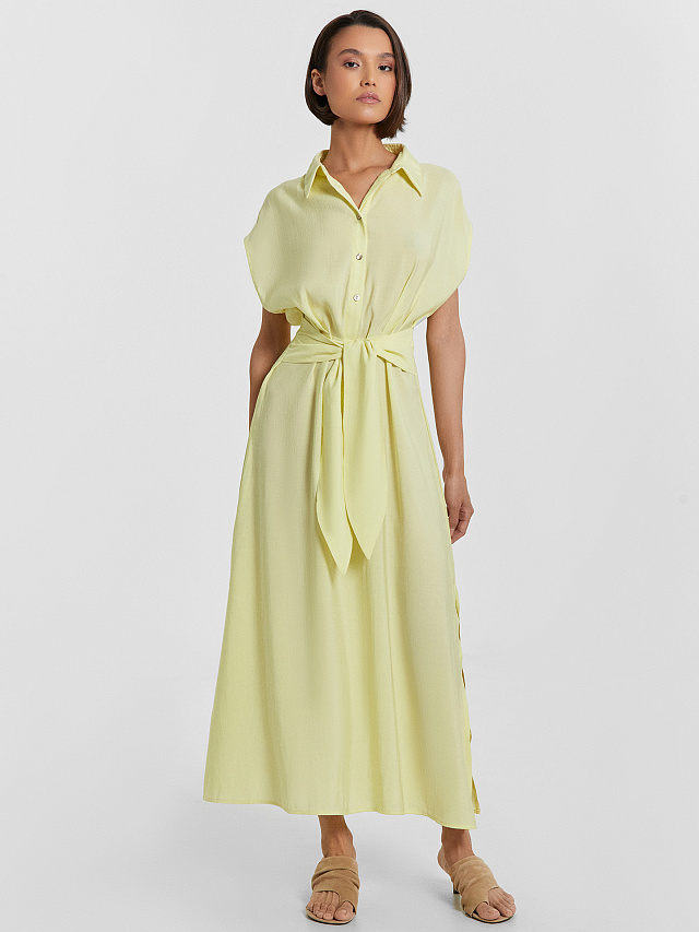 Элегантность и комфорт объединены в этом женском платье полуприлегающего силуэта. Эта модель создана для женщин, которые ценят стиль, свободу движений и внимание к деталям. Круглая горловина с аккуратным воротником-стойкой придает образу изысканности, а застежка планка с пуговицами на передней детали добавляет нотку классики. Эластичная тесьма на талии обеспечивает идеальную посадку, подчеркивая женственный силуэт, а широкий пояс, втачанный в боковые швы, привносит выразительность и завершенность в дизайн. Разрез в левом боковом шве добавляет легкость движениям, создавая ощущение воздушности и динамичности. Длина ниже колена делает платье универсальным: оно гармонично впишется как в повседневные образы, так и в элегантные сочетания для особых случаев. Изделие выполнено из смесового модала – мягкого, приятного к телу материала, который обеспечивает комфорт на протяжении всего дня. Это платье станет незаменимым элементом гардероба, позволяя создавать стильные и удобные образы, подчеркивая индивидуальность и безупречный вкус.