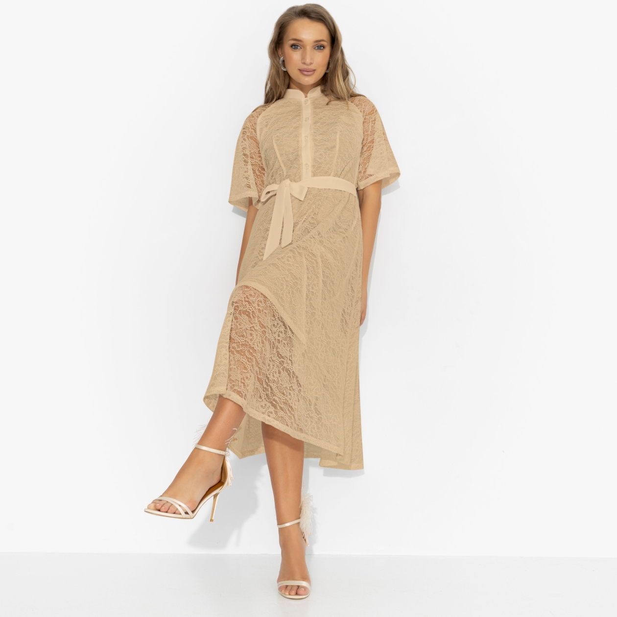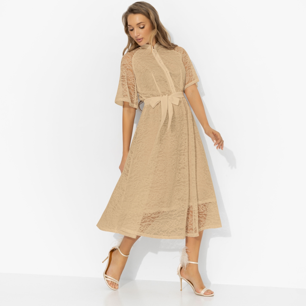 В этом платье невозможно быть «просто». «Моя итальянская история» обворожительна – пояс рисует талию, ткань мягко подчёркивает силуэт, кружево струится, мягко обрамляя плечи. Она примерила его – и уже мысленно шла по узким улочкам, где комплименты раздают щедрее, чем эспрессо. Выбирая такой наряд, будьте готовы – даже обычный день зазвучит как саундтрек к романтической комедии.