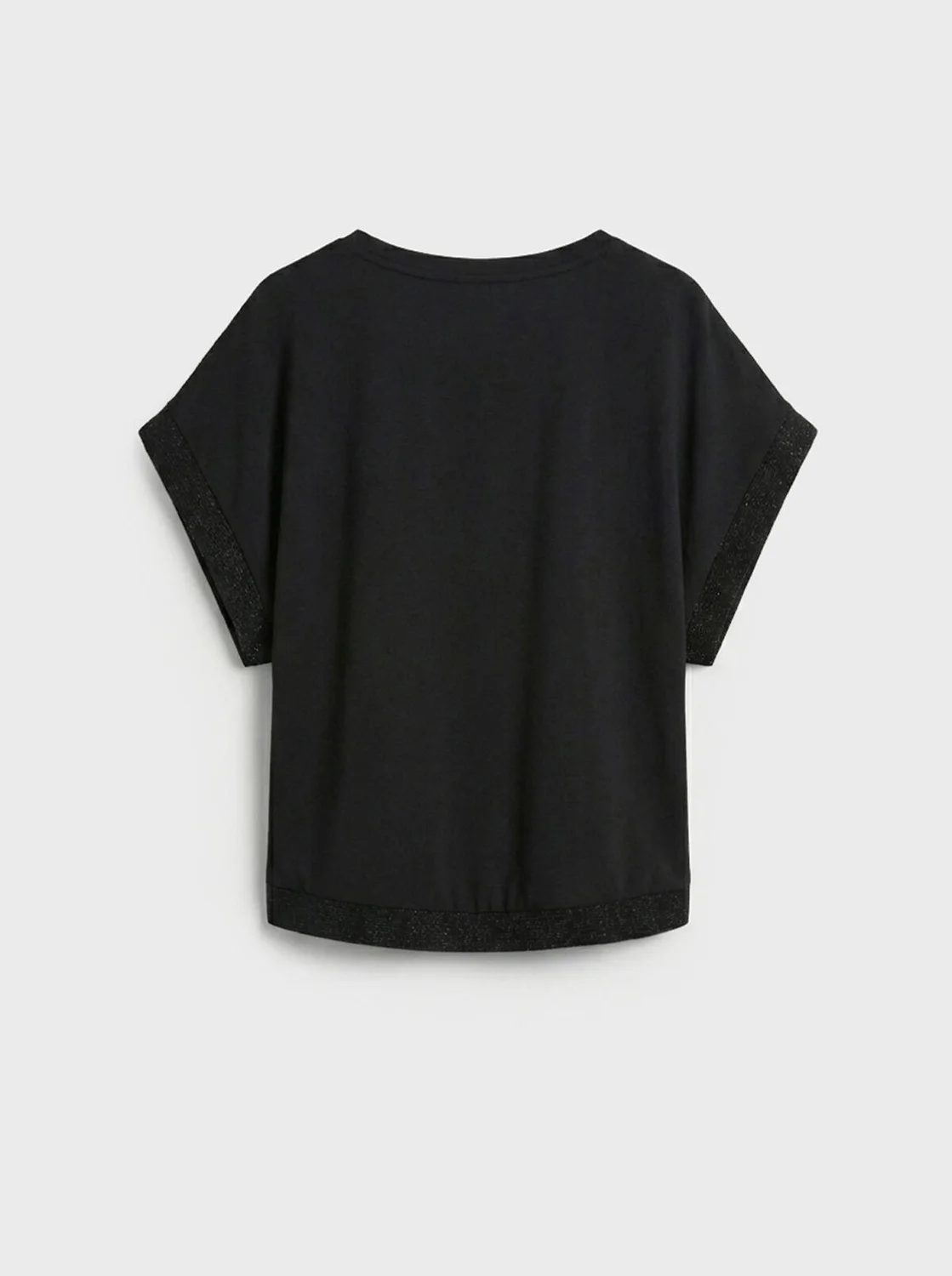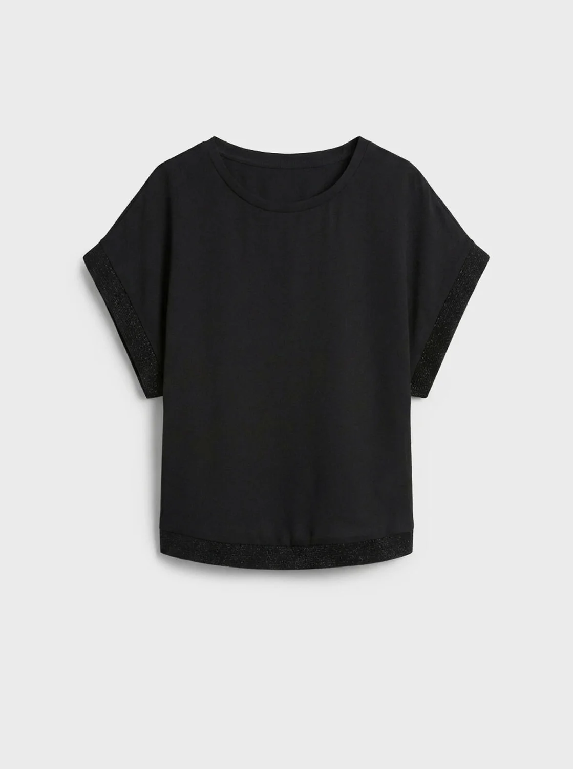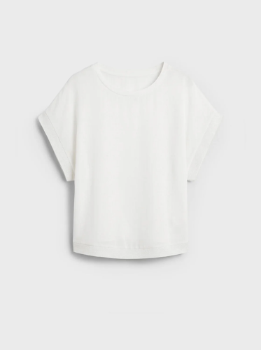 Женский джемпер. Модель свободного кроя, средней длины, выполнен из тонкого мягкого трикотажа. У изделия круглая горловина, короткие рукава и прямой низ.