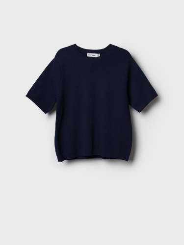 Женский джемпер. Модель средней длины, выполнен из тонкого мягкого трикотажа с жаккардовой фактурой. Имеет прямой крой и короткие рукава. Горловина, низ и края рукавов оформлены резинкой.