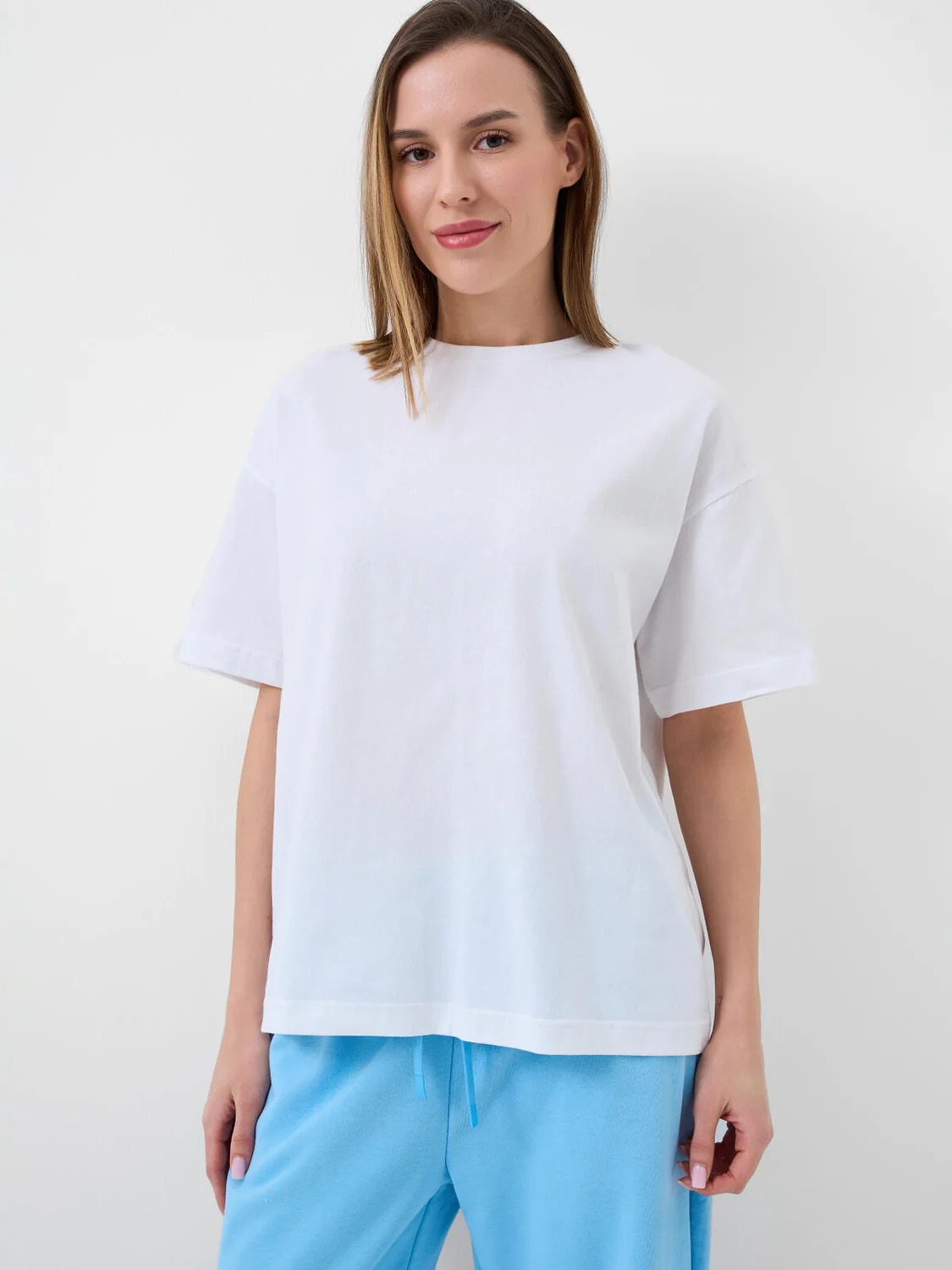 Женская базовая футболка оверсайз. Модель выполнена из эластичного хлопкового трикотажа джерси.