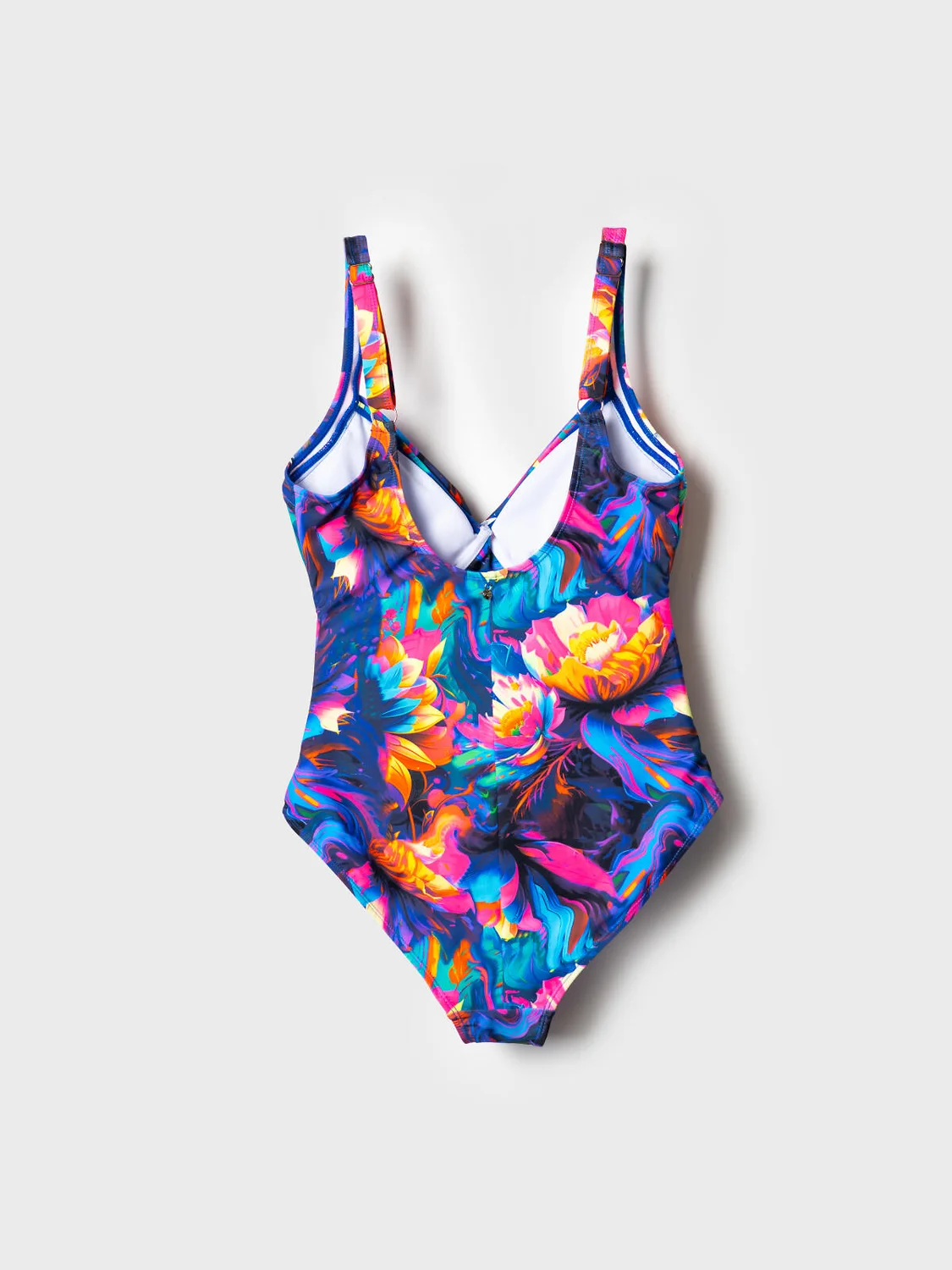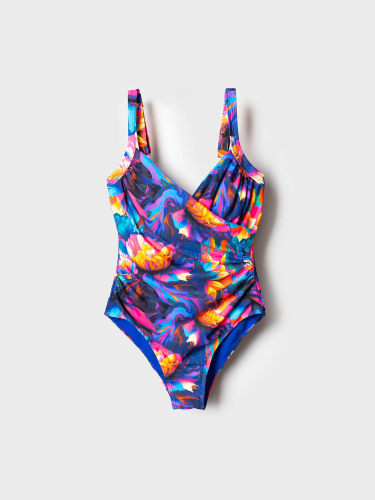 Женский слитный купальник с эффектной цветочной драпировкой спереди. Модель выполнена из эластичной ткани с насыщенным цветочным принтом. Передняя часть оформлена запахом с V-образным вырезом, спинка открытая, с U-образным вырезом и декоративными перемычками. Купальник усилен внутренними косточками для лучшей поддержки груди. Регулируемые бретели с металлическими деталями позволяют точно подогнать посадку. Внутри — подкладка. Благодаря UF-защите, ткань сохраняет первоначальный вид даже при длительном пребывании на солнце. Подойдет для пляжа, отдыха и активного лета.