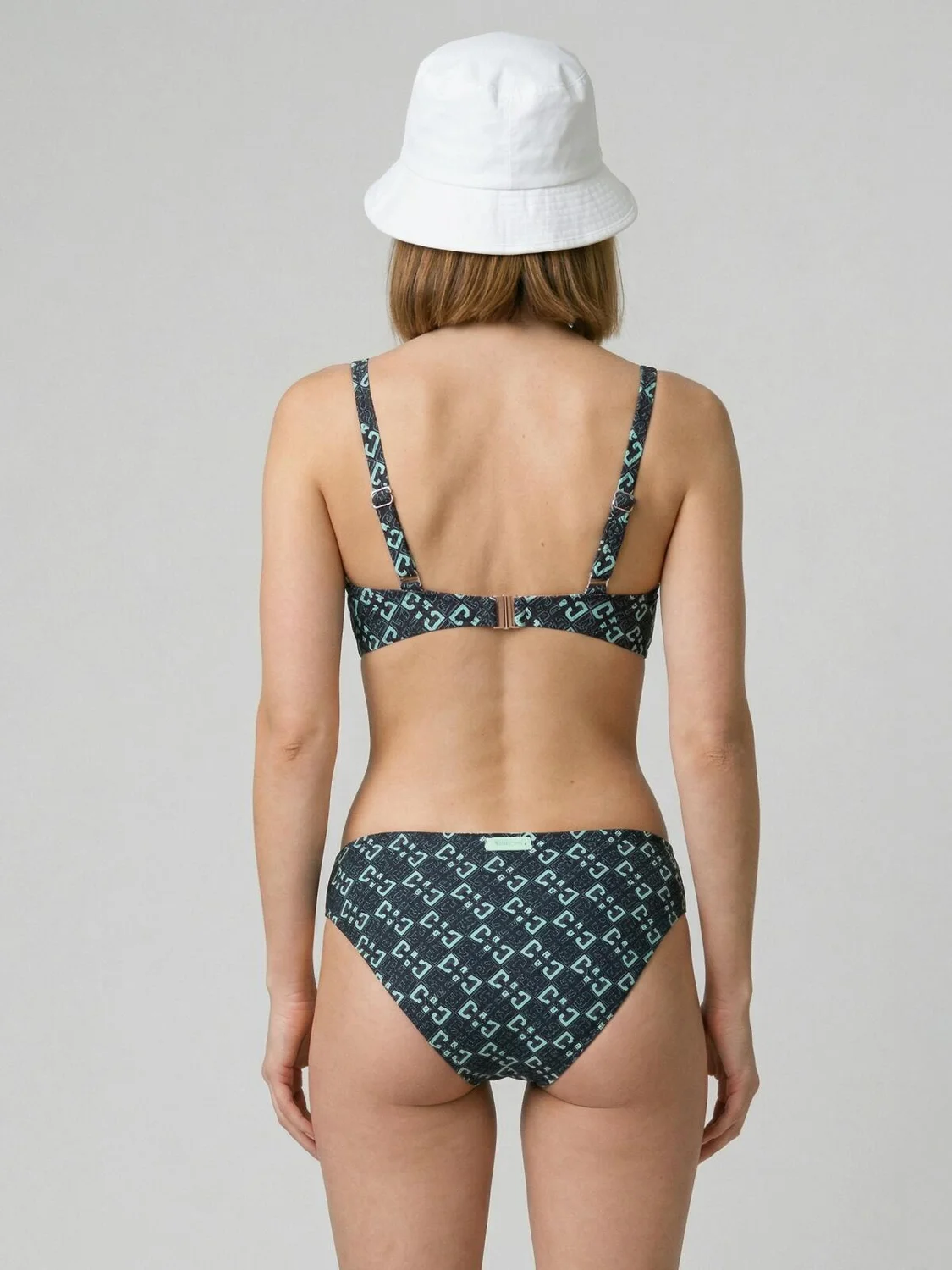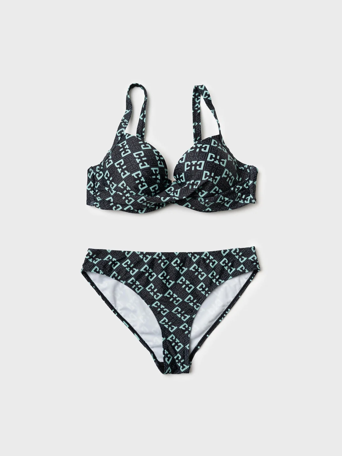 Женский раздельный купальник. Лиф оформлен с V-образным вырезом и декоративным перекрещиванием спереди, сзади застёгивается на металлический замок и оснащён регулируемыми бретелями. Внутри чаши и каркас для лучшей поддержки. Плавки классического кроя, с комфортной средней посадкой. По всей поверхности ткани — графичный узор. Внутри предусмотрена подкладка. Эластичная обработка краёв обеспечивает удобство в носке. Благодаря UF-защите, ткань сохраняет первоначальный вид даже при длительном пребывании на солнце. Подойдет для пляжа, отдыха и активного лета.