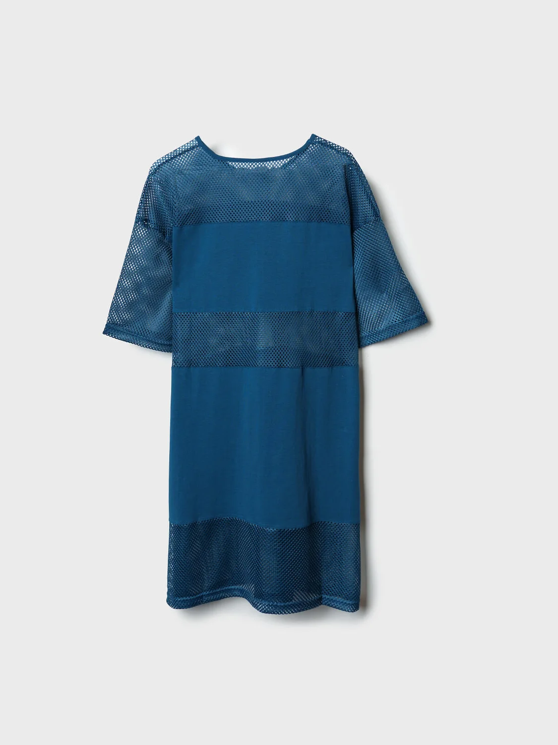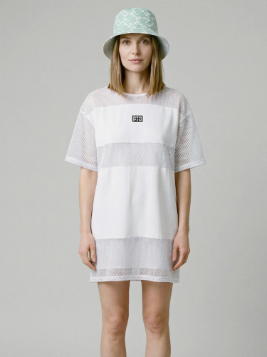 Пляжное женское оверсайз платье. Модель с длиной мини, выполнена из комбинации хлопкового трикотажа джерси и сетки.