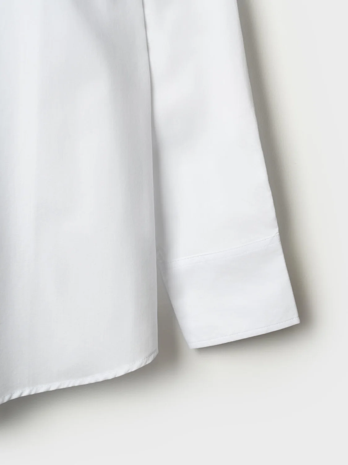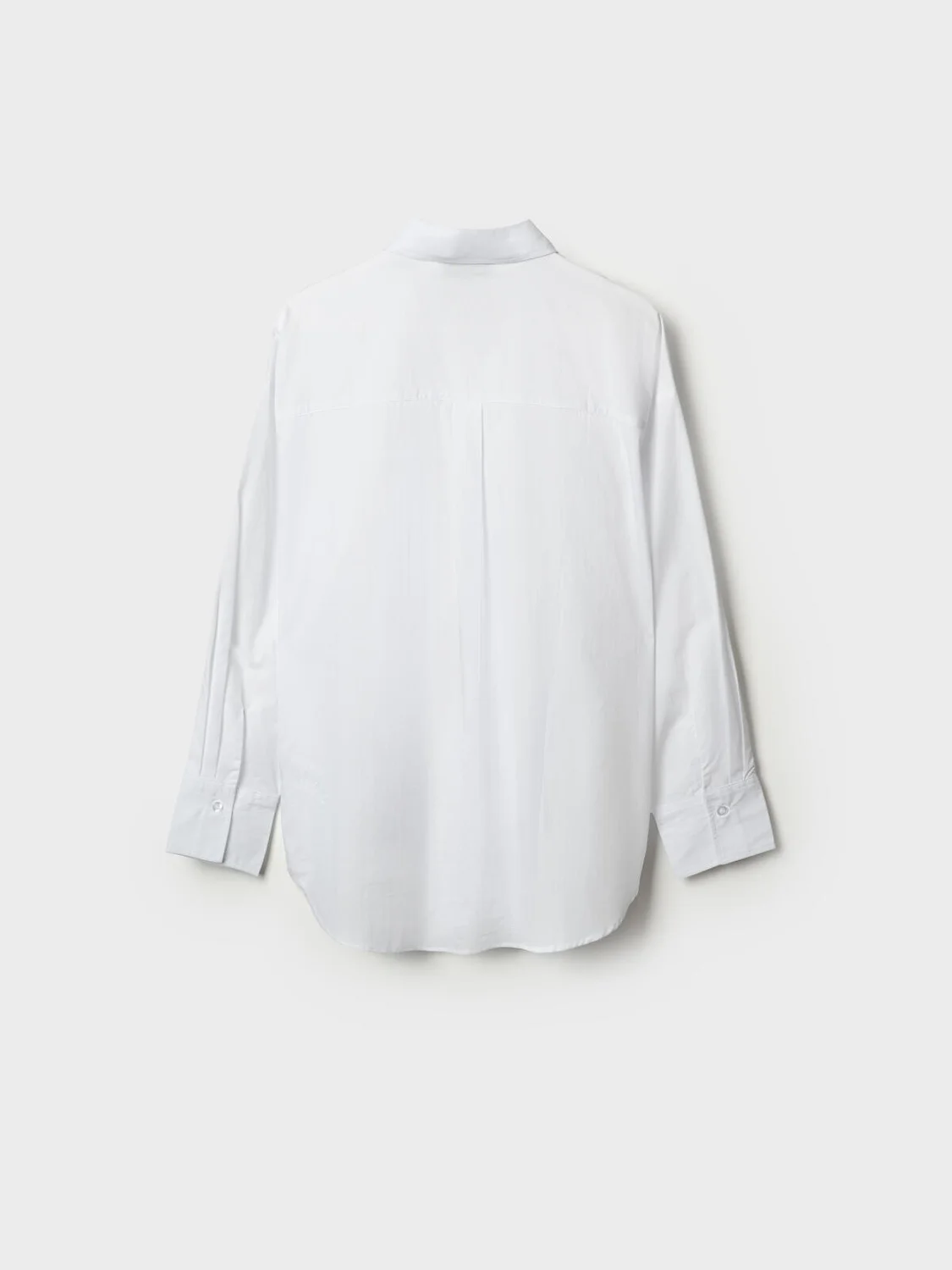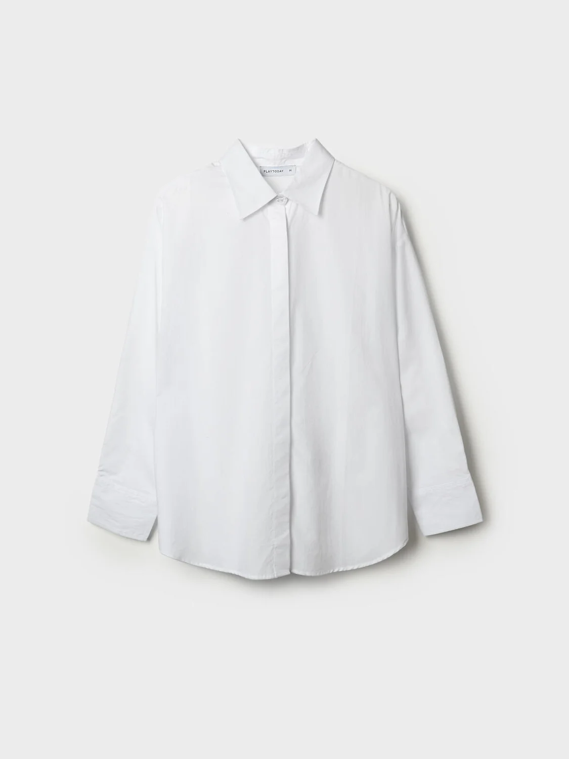 Женская белая рубашка. Модель свободного кроя выполнена из лёгкого материала. Удобная застёжка на пуговицы. Классический отложной воротник, длинные рукава с манжетами на пуговицах. Нижний край рубашки красиво округлён.