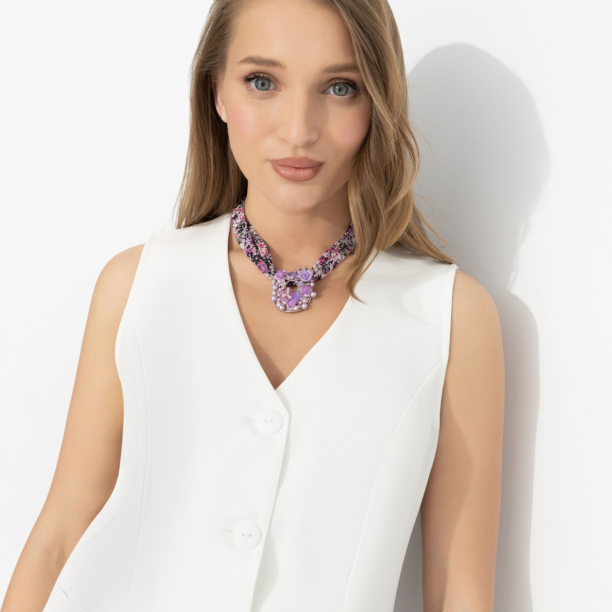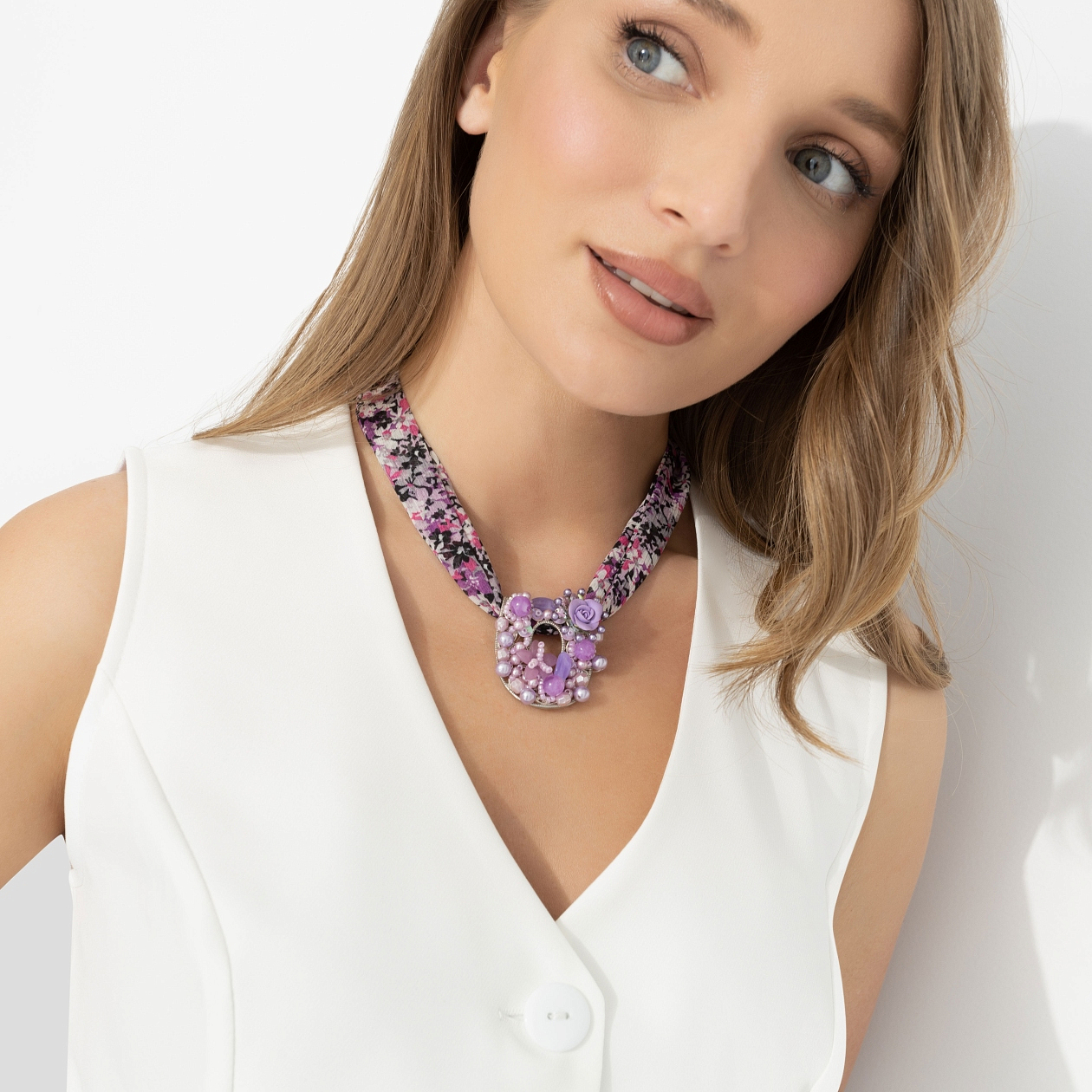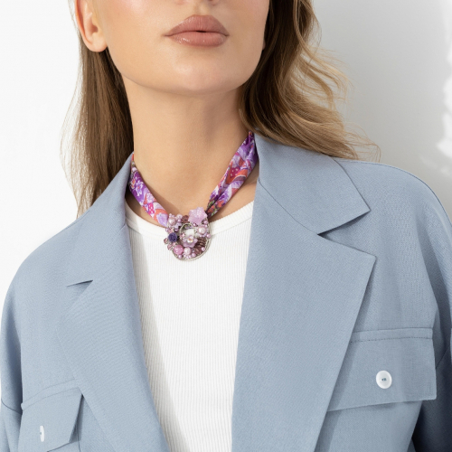Когда ты угадывешь с выбором украшений, в этом есть что-то гипнотическое − не громко, но цепляет и не отпускает. Подвес с переливами сиреневых и розовых оттенков собирает свет и движение в одной точке. Бисер, бусины, мягкий блеск − всё работает на эффект глубины. Идеален для тех, кто не боится цвета и умеет носить акценты: на светлой коже раскрывается особенно ярко, а с лаконичной базой становится центром всего образа. Используйте как ожерелье или как подвес на сумку.
