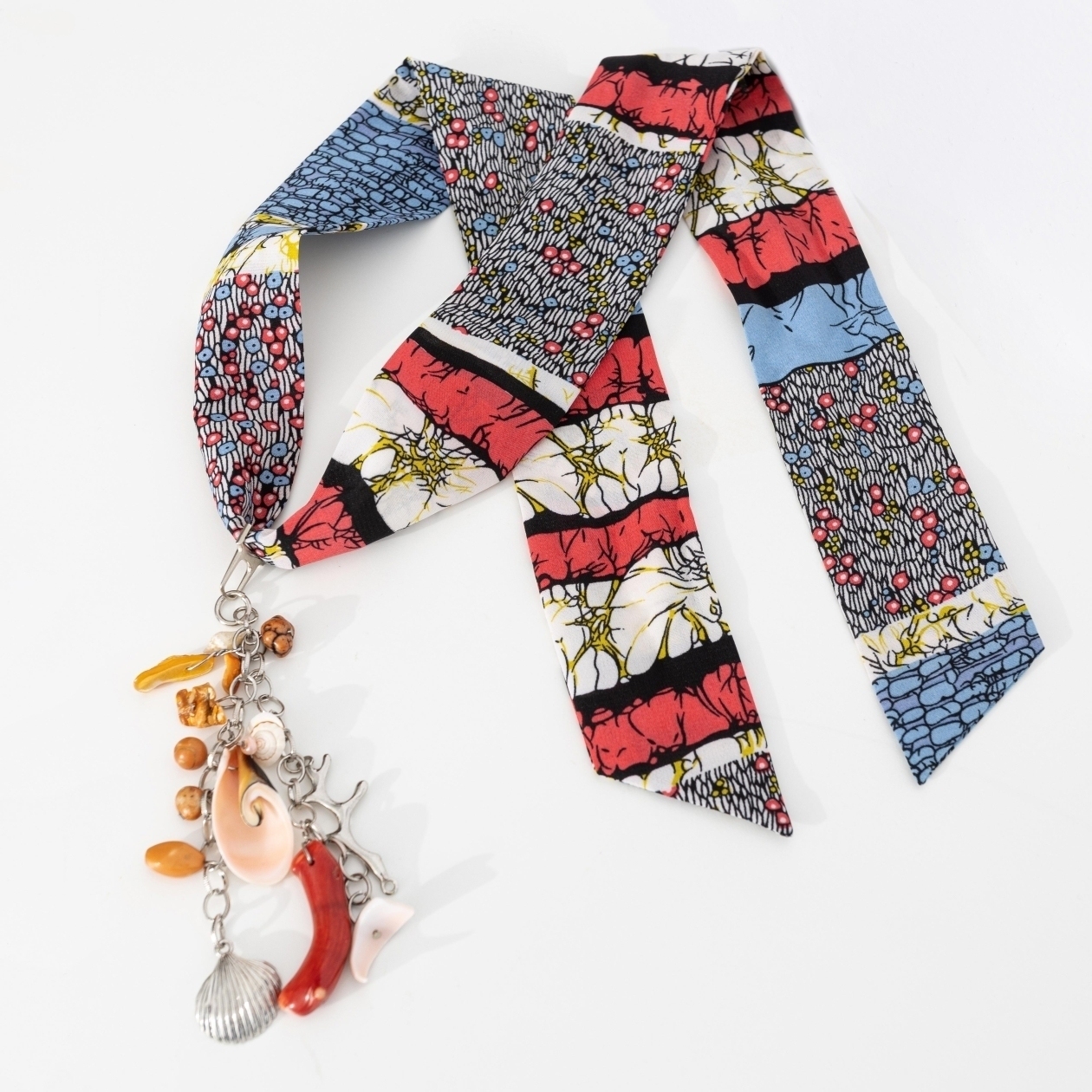 Женственность и изобилие ‒ этот подвес словно отвечает на главные запросы сердца и открывает поток вдохновения. Цветные камни, игривые подвески и мягкая лента с акцентным дизайнерским принтом ассоциируются с богинями изобилия ‒ Афродитой и Лакшми. Стильный элемент, который подчеркивает полноту жизни, помогает чувствовать себя любимой и желанной. Только для тех, кто ценит чувственность, гармонию и стремится добавить нотку магии в свой повседневный образ. Можно носить как кулон, в качестве подвеса на сумку или пояс.