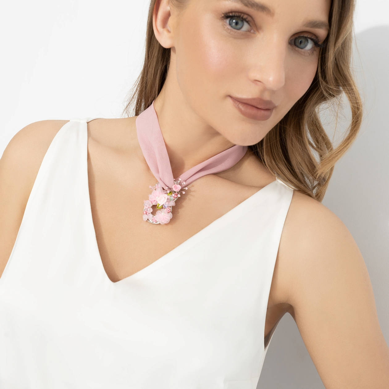 Ей важно чувствовать − вкус утра, мягкость ткани на коже, свои эмоции без фильтров. Она хочет окружать себя красотой не ради картинки в соцсетях, а ради состояния. Замедляться, потому что не обязана спешить. Подвес становится частью этого мира: лёгкий, почти невесомый, с мягким блеском и текстурой, которая будто касается кожи. Как напоминание: ты можешь выбирать себя каждый день, и это тоже сила. Используйте как ожерелье или как подвес на сумку.
