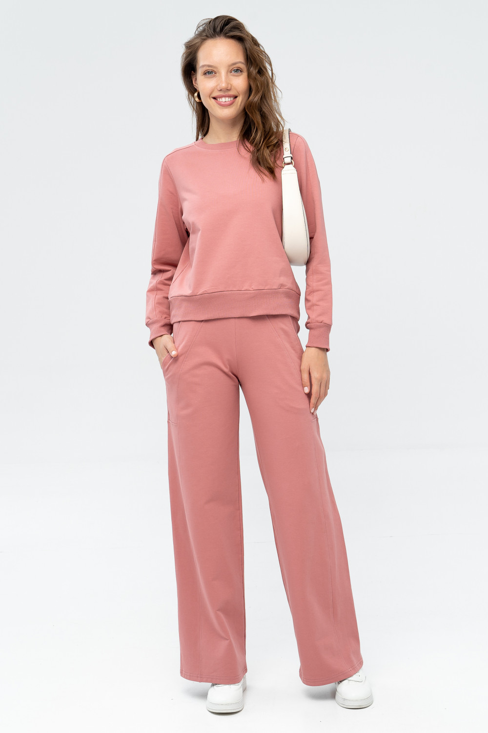 Стильные брюки-палаццо отличаются легкостью и комфортным прилеганием к телу. Мягкая резинка на талии обеспечивает идеальную посадку. Брюки прямые с карманами и широкими лампасами выполнены из мягкого хлопкового футера, что придает ему стильный образ, а заодно выгодно подчеркивает фигуру. Выглядит это очень эффектно и стильно. В комплекте с нашими джемперами из этой серии, футболкой или топом получается прекрасный костюм, который подходит как для дома, так и для прогулок и путешествий.