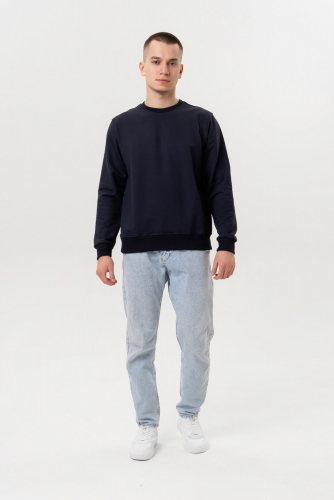 Мужской джемпер из мягкого хлопкового футера - это must have для каждого мужчины. Рукава втачные на манжете, горловина круглой формы с планкой из контрастного трикотажа как на свитере.