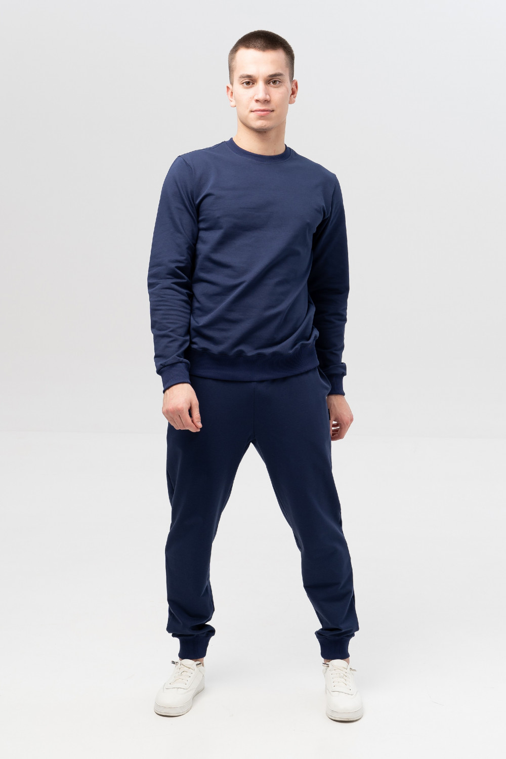 Мужской джемпер из мягкого хлопкового футера - это must have для каждого мужчины. Рукава втачные на манжете, горловина круглой формы с планкой из контрастного трикотажа как на свитере.