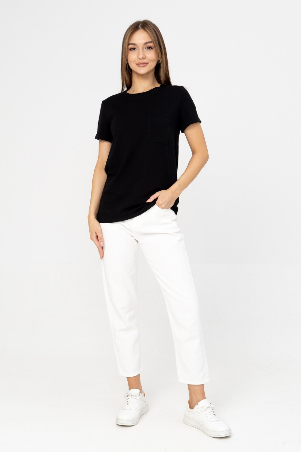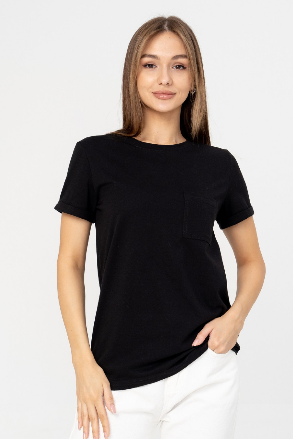 Базовая футболка из 100% хлопка с нагрудным карманом должна быть в гардеробе у каждой девушки! Отлично будет сочетаться с любым низом. Эта футболка станет идеальным дополнением вашего базового гардероба. Легкий материал прекрасно "дышит" и хорошо впитывает влагу. Для