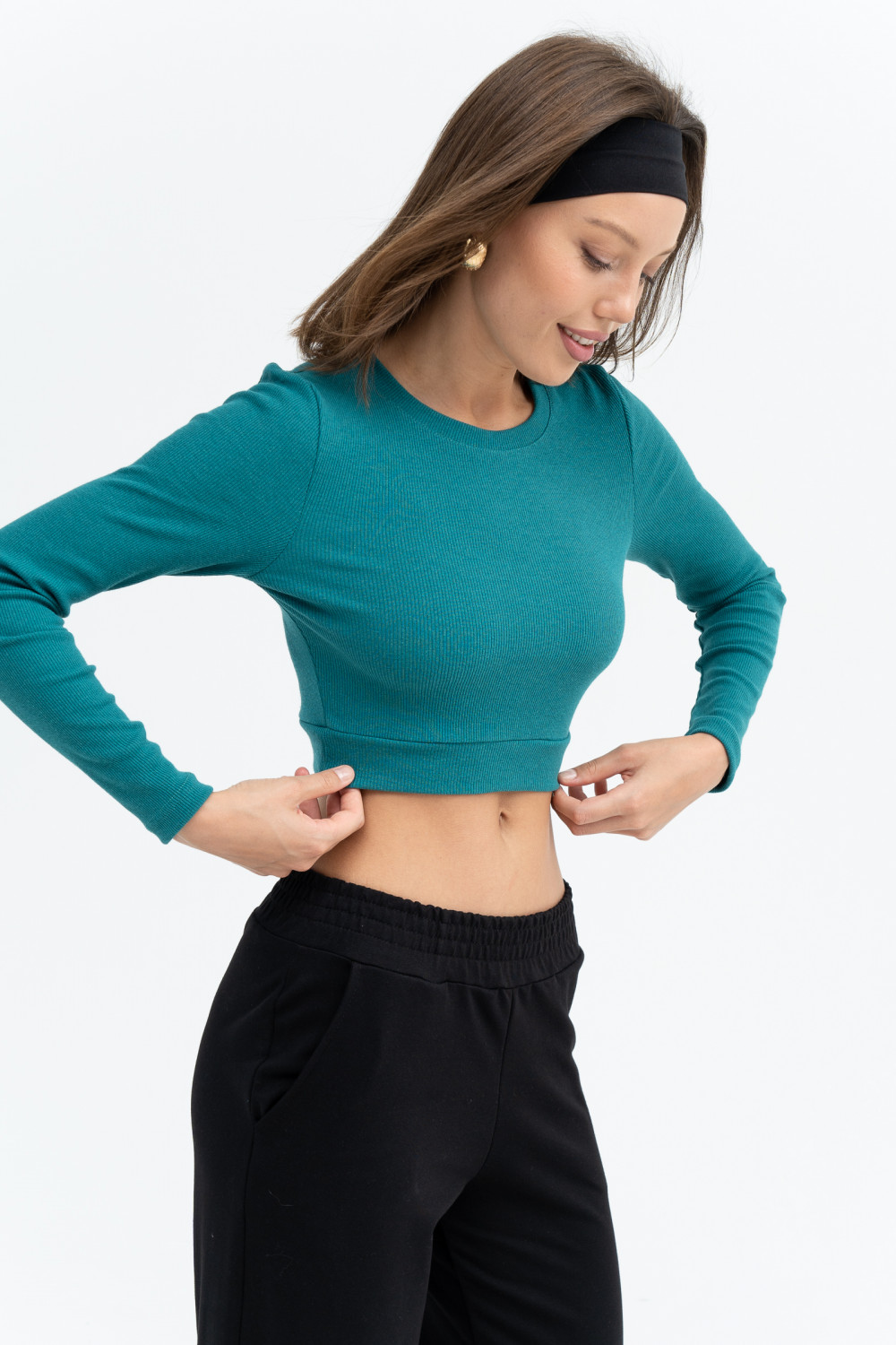 Укороченный джемпер из кашкорсе с лайкрой, длиной чуть выше талии. Рукава втачные длинные. Он идеально облегает фигуру, выделяя все её достоинства и подчёркивая ваш аккуратный силуэт. Наденете вы кроссовки или каблуки – неважно. В нём вы всегда будете выделяться, ведь красота в простоте. Все эти детали делают эту модель особенной привлекательной, выглядит очень эффектно и стильно. Быть модной с заботой о себе можно!