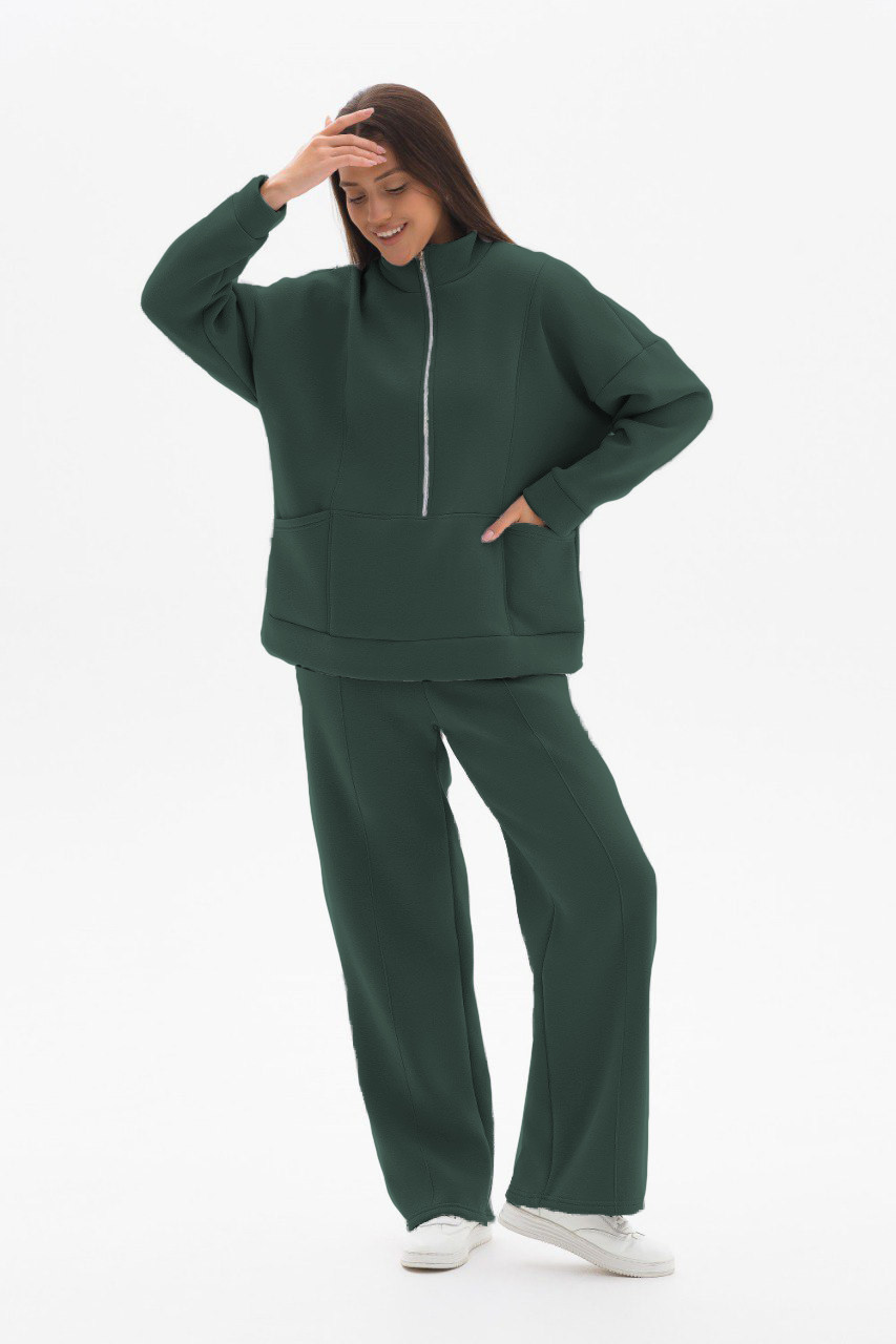 Теплый и комфортный свитшот из футера с начёсoм всегда будет актуальным и располагающим к себе. Он обречен стать любимой одеждой, которую не захочется снимать. Мягкая основа с начесом на изнанке создает особый микроклимат и не пропускает холод. Свитшот не вытягивается, не линяет и выдерживает многократные стирки. Изделие оверсайз-силуэта имеет прямой крой, спущенную линию плеча, длинные рукава. Вместительные карманы согреют руки в самый холодный день. Воротник, низ и манжеты выполнены из основного полотна, фиксирующей объем. Свободный объём не стесняет движений и комфортно садится по фигуре.