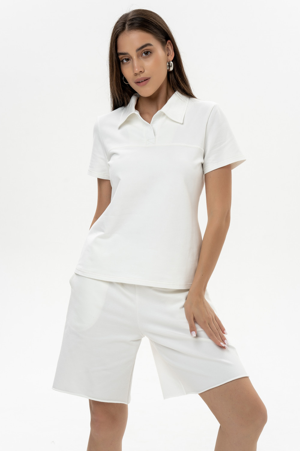 Невероятно комфортный, приятный к телу джемпер. Изделие прилегающего силуэта с воротником-поло из мягкого шелковистого футера. Рукава втачные короткие. Ее удобно заправлять и носить навыпуск, отлично сочетается с простыми и ультрамодными низами. За счёт прямого кроя, она одинаково стильно смотрится на разных типах фигуры. Этот джемпер станет идеальным дополнением вашего гардероба.