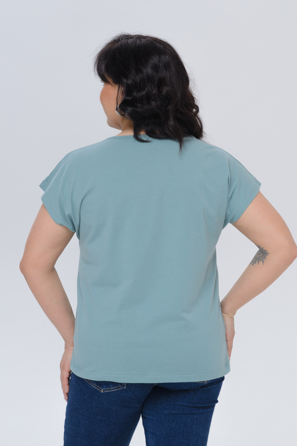 Джемпер из мягкого, гладкого трикотажного полотна кулирка с лайкрой. Натуральный хлопок в составе тактильно приятен к телу и обладает хорошей воздухопроницаемостью. Джемпер со спущенным плечом и имеет фигурную горловину, выполненную из основной ткани изделия. Необычная горловина делает модель модной и трендовой.