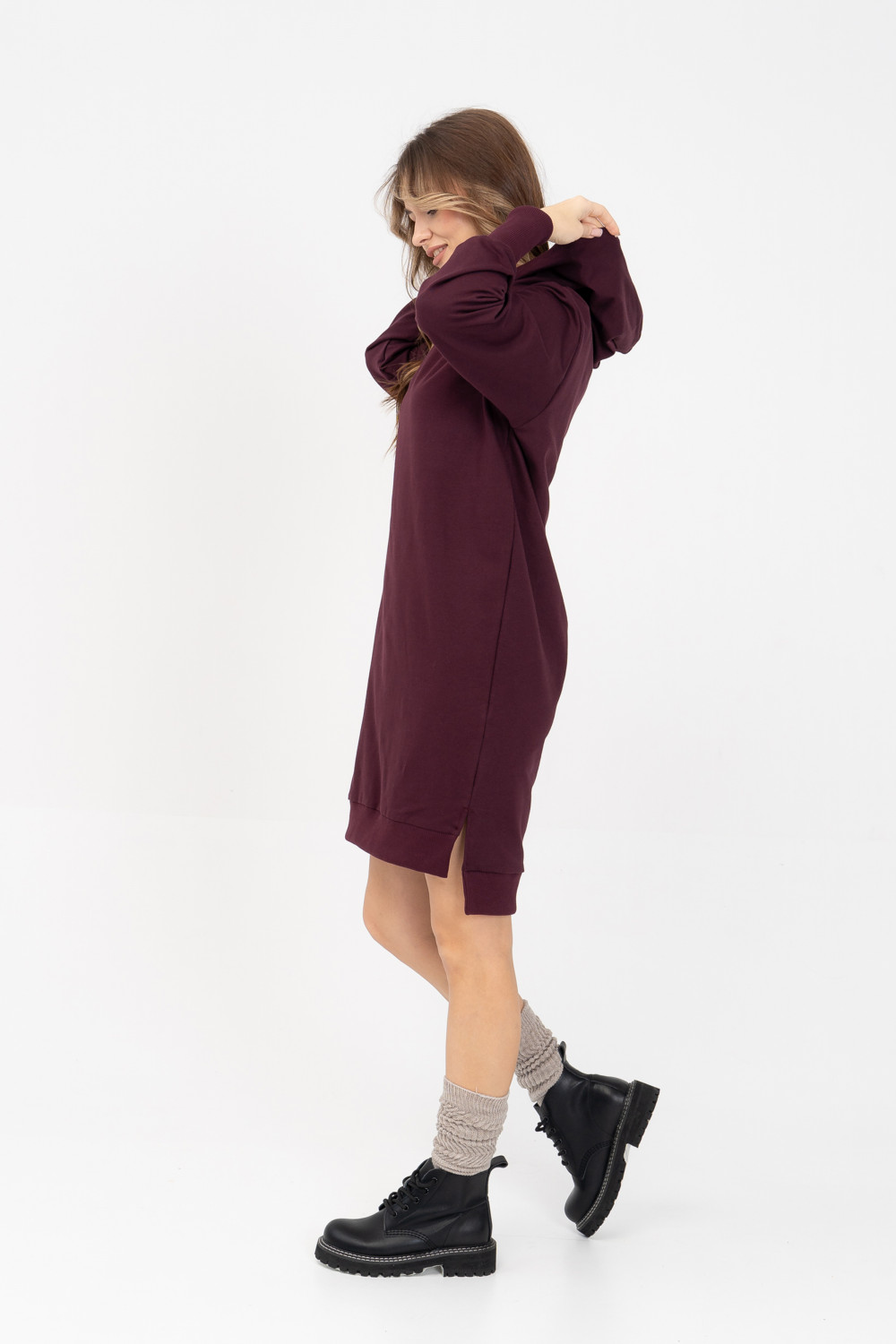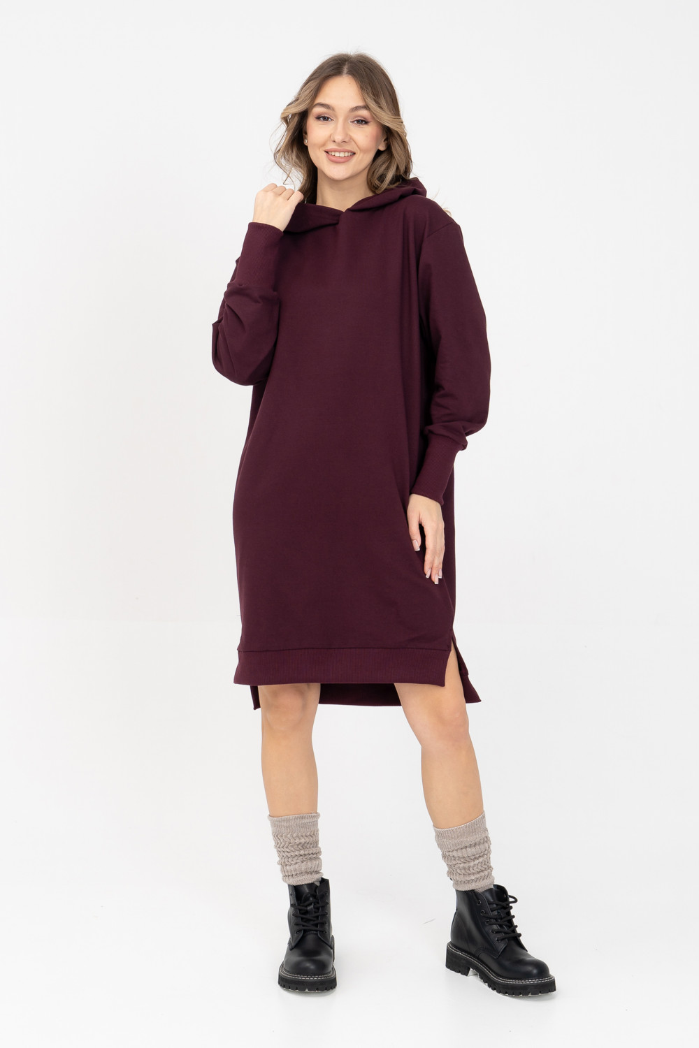 Модное платье с боковыми разрезами по бокам из лёгкого хлопкового футера - тренд этого сезона. Мягкий трикотаж, капюшон, свободный крой — это то, что вам нужно, чтобы выглядеть неотразимо. Рукава объемные на высокой манжете. Все эти детали делают эту модель особенно привлекательной, выглядит очень эффектно и стильно. Это платье станет идеальным дополнением вашего гардероба. Легкий материал прекрасно "дышит" и хорошо впитывает влагу. Для изготовления изделий “SoloMio“ используются только самые лучшие и качественные материалы. Быть модной с заботой о себе можно!