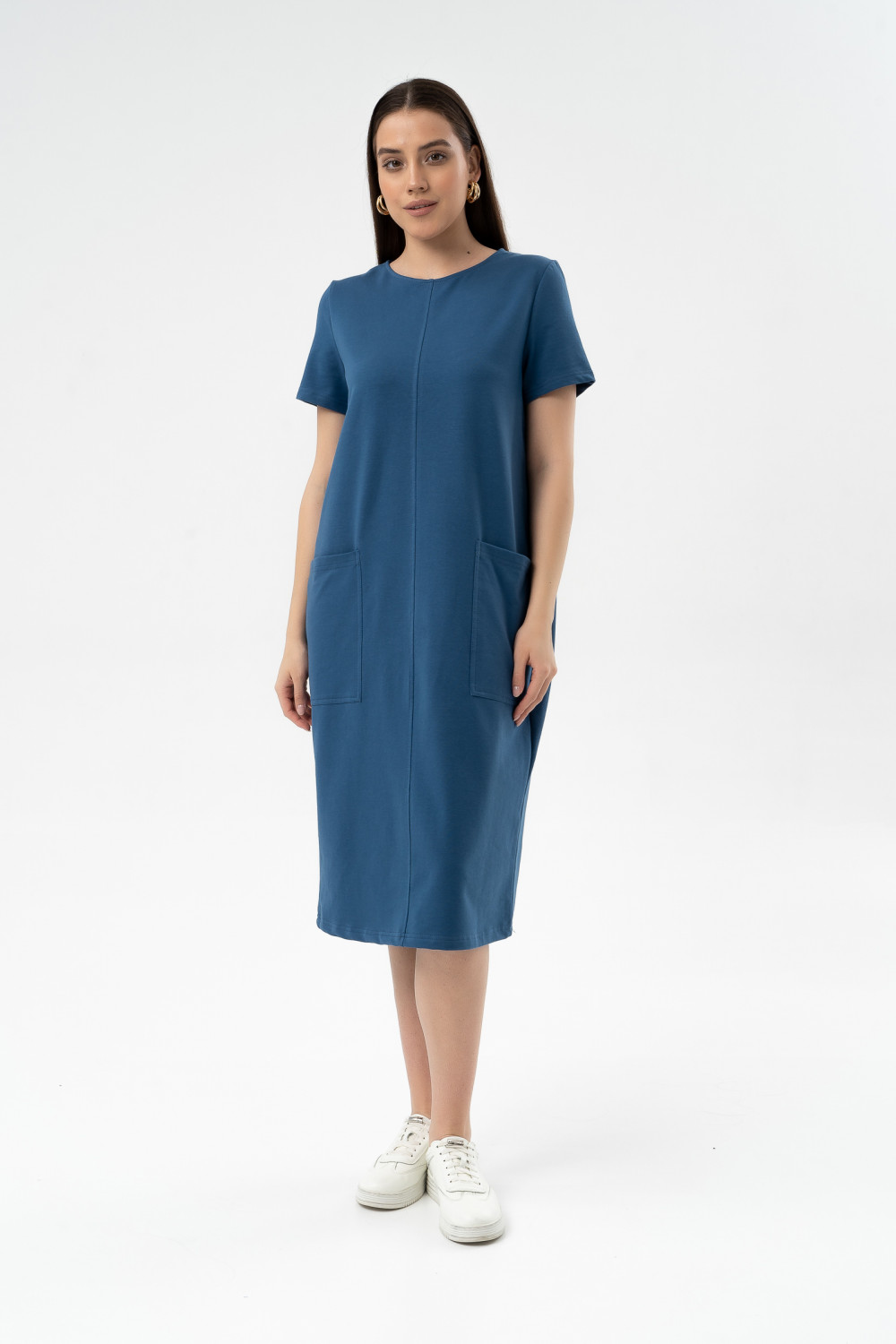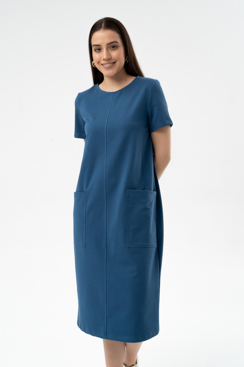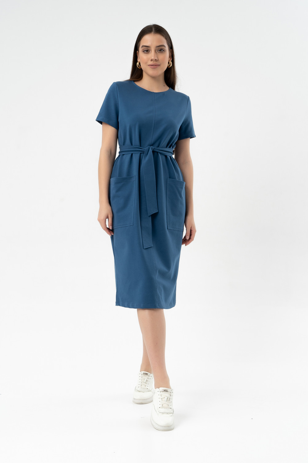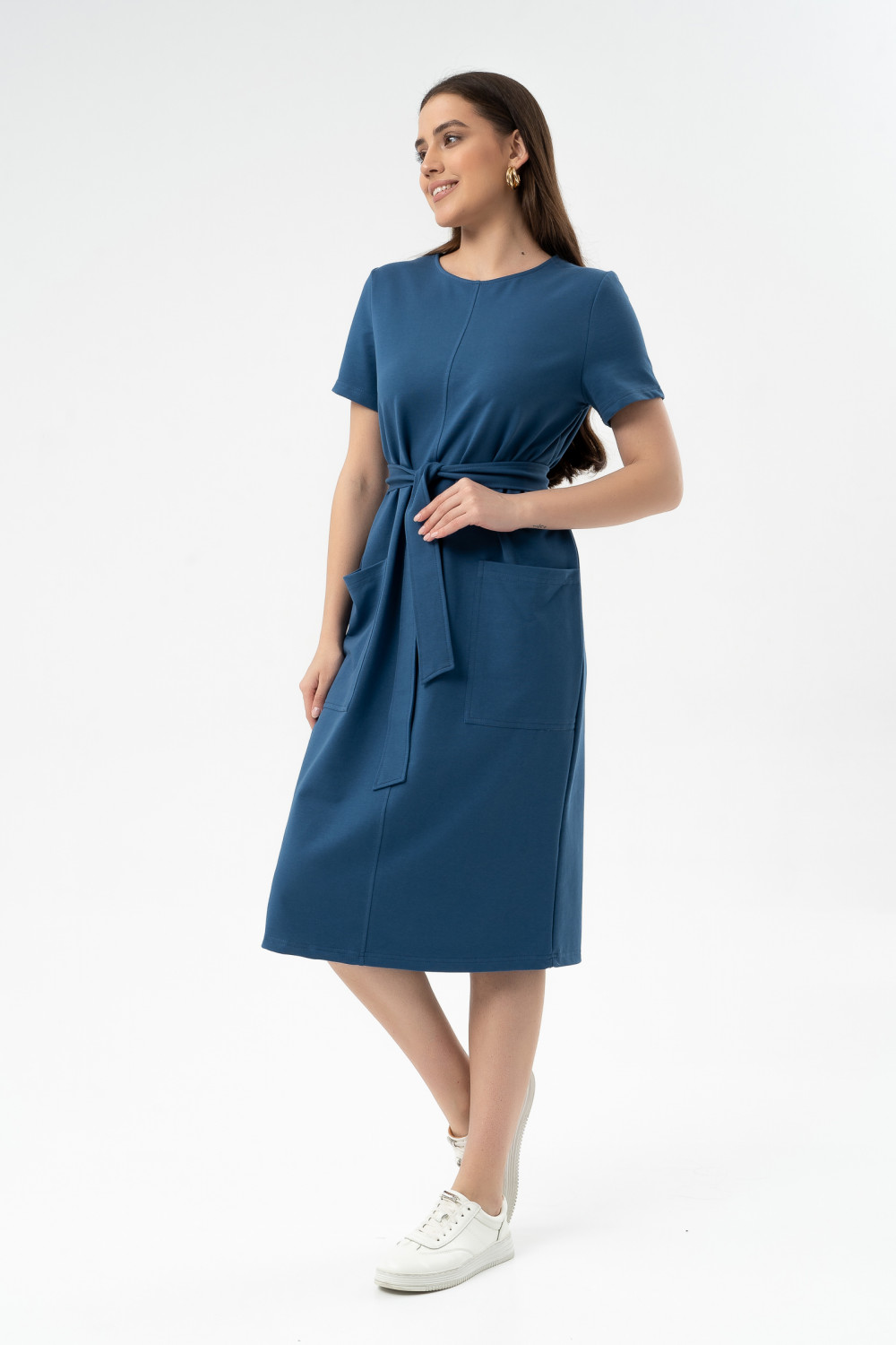 Модное объемное платье из лёгкого хлопкового футера длиной ниже колена с накладными карманами - тренд этого сезона. Рукава втачные короткие. Мягкий трикотаж, съемный пояс — это то, что вам нужно, чтобы выглядеть неотразимо. Спереди шов с декоративной отсрочкой. Это платье станет идеальным дополнением вашего базового гардероба. Легкий материал прекрасно "дышит" и хорошо впитывает влагу. Для изготовления изделий “SoloMio“ используются только самые лучшие и качественные материалы.