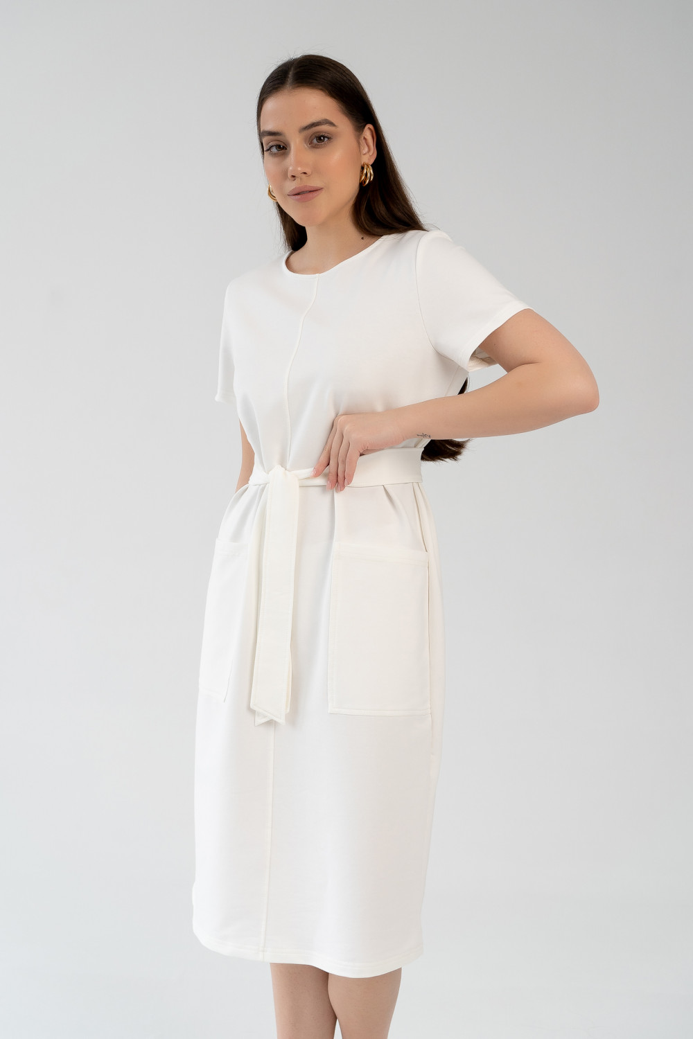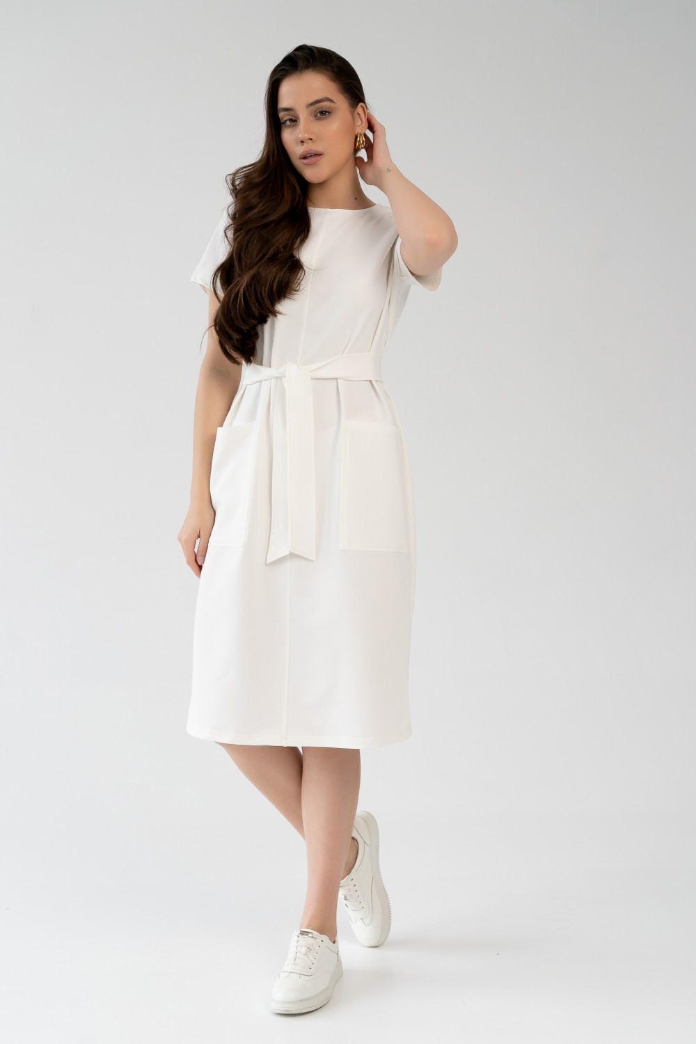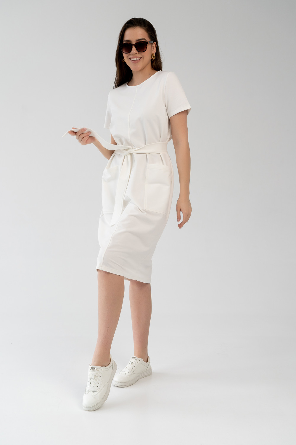 Модное объемное платье из лёгкого хлопкового футера длиной ниже колена с накладными карманами - тренд этого сезона. Рукава втачные короткие. Мягкий трикотаж, съемный пояс — это то, что вам нужно, чтобы выглядеть неотразимо. Спереди шов с декоративной отсрочкой. Это платье станет идеальным дополнением вашего базового гардероба. Легкий материал прекрасно "дышит" и хорошо впитывает влагу. Для изготовления изделий “SoloMio“ используются только самые лучшие и качественные материалы.