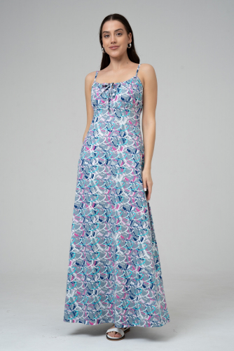 Притягательный и невероятно легкий сарафан с летним звучанием подарит яркие и приятные эмоции! Невесомое хлопковое полотно приятно ощущается на коже и красиво струится в движении. Сочетание легких хлопковых тканей, игривого рисунка – прекрасно гармонируют с друг с другом, придавая образу особый шарм. Деликатный вырез на груди, регулируемые бретели-завязки, длина и расклешенный низ подчеркивают женственность и изящность! Сарафан отлично смотрится на любой фигуре, зрительно делает её более стройной, не искажая пропорций. Нежный хлопковый сарафан идеально для повседневных летних прогулок и выходов в свет.