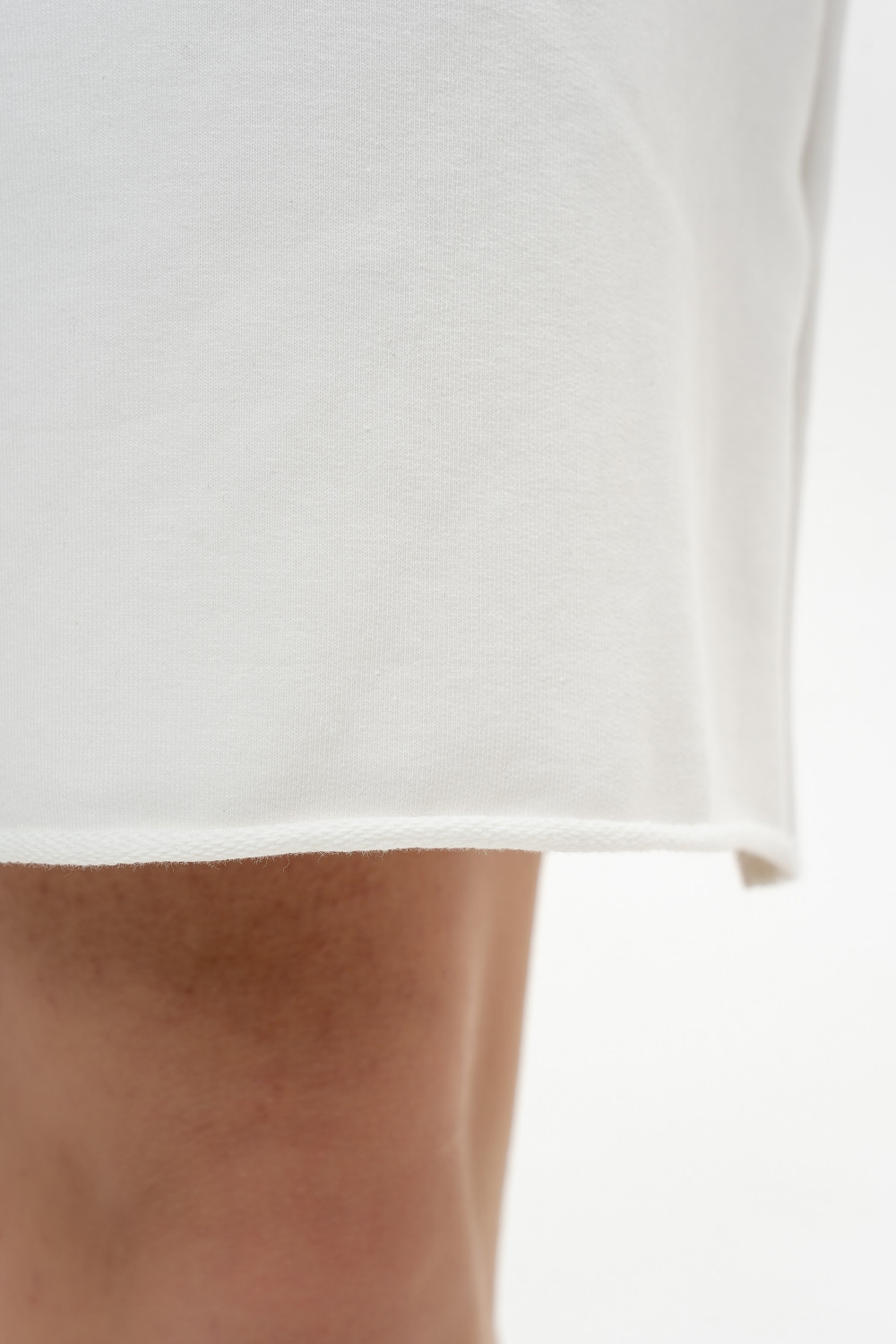 Шорты длиной чуть выше колена выполнены из хлопкового футера с высокой посадкой и карманами в боковых швах. Отстрочка по центру на передней половинке шорт придают особый шик. Выглядит это очень эффектно и стильно. Модель универсальна и сочетается, как с толстовками, свитшотами, так и с футболками.