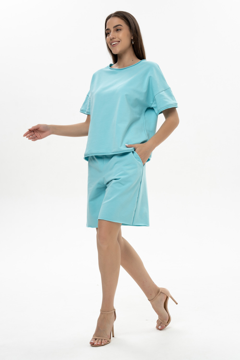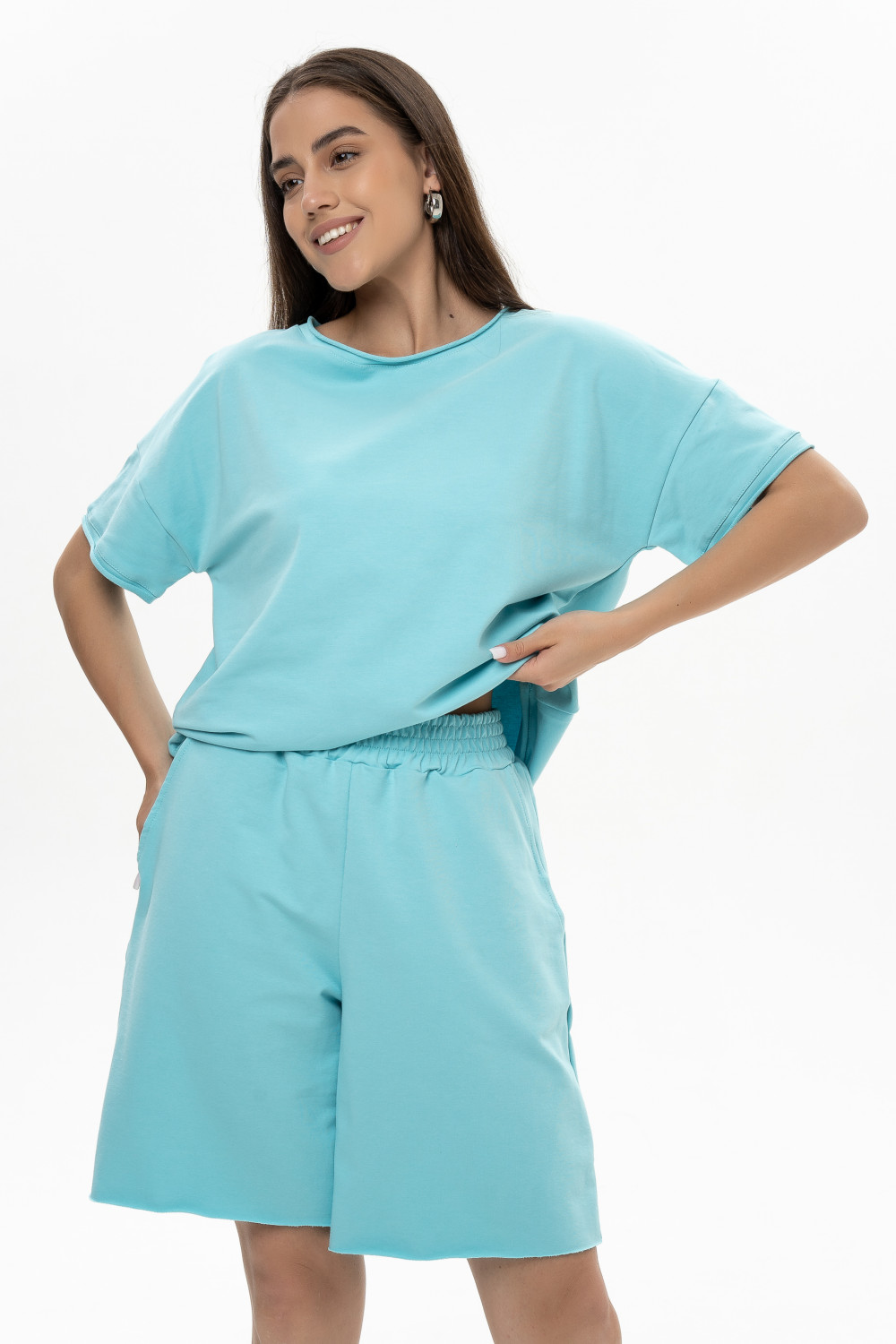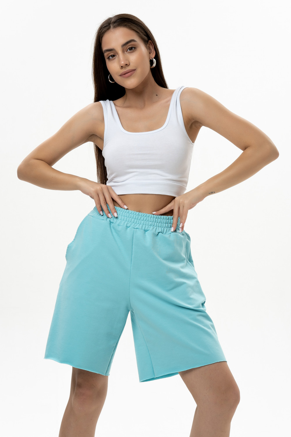 Шорты длиной чуть выше колена выполнены из хлопкового футера с высокой посадкой и карманами в боковых швах. Отстрочка по центру на передней половинке шорт придают особый шик. Выглядит это очень эффектно и стильно. Модель универсальна и сочетается, как с толстовками, свитшотами, так и с футболками.