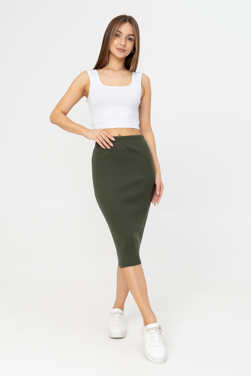Стильная юбка-карандаш, выполненная из приятного к телу мягкого трикотажа кашкорсе с лайкрой, одновременно подходящая как для спортивного, так и для элегантного образа, подчеркивающая женственные изгибы тела. Длина ниже колена. Модель прекрасно подходит для свидания, а в сочетании с классическими блузами и рубашками будет уместна в офисе.