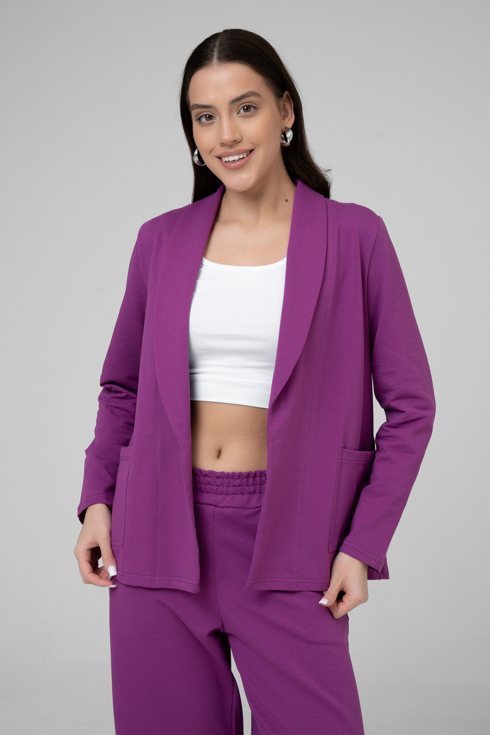 Жакет из мягкого хлопкового футера с накладными карманами прямого силуэта и втачными длинными рукавами. Выглядит очень эффектно и стильно. Его универсальность позволяет прекрасно сочетаться с любым изделием, будь это платье или брюки, или юбка, что автоматически решает проблему бесконечных переодеваний перед зеркалом в поисках идеального образа! В сочетании с различными вещами можно получить абсолютно разные образы, как для повседневной жизни, так и для яркой вечеринки. Быть модной с заботой о себе можно!