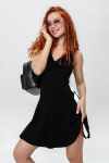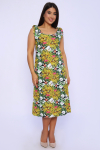 Сарафан женский выполнен из трикотажного полотна кулирка. Сарафан свободного силуэта, по низу изделия выполнены разрезы. Горловина и пройма окантованы.