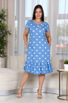 Сарафан женский выполнен из трикотажного полотна кулирка. Сарафан полуприлигающего силуэта, расширенный к низу. На полочке подрезные бочка. Накладные карманы в бочках, низ бочка с широкой оборкой, спущенное плечо, углубленная пройма, горловина и пройма окантованы.