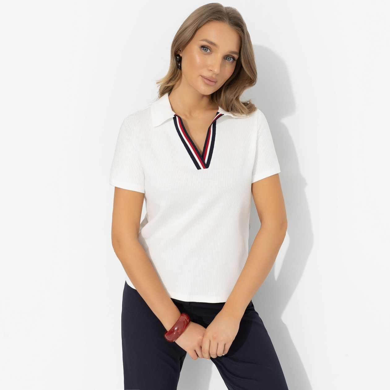 Поло в 2026 возвращается как главный герой тренда quiet sport: аккуратный, собранный, с намёком на движение. Эта модель – как утро, когда ты никуда не спешишь, но везде успеваешь. Чистый белый, контрастная окантовка у выреза, лаконичный воротник – всё говорит о вкусе на максималках. Поло сейчас носят с брюками, юбками, под пиджак – и каждый раз оно работает по-новому. Комфорт, статус и ощущение, что ты в отличной форме – даже если просто вышла за кофе.