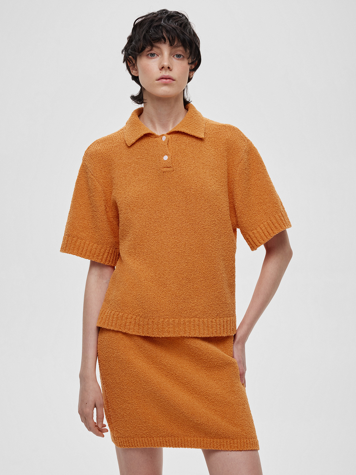 Ст.цена 2475р. Поло с коротким рукавом из хлопка букле, оранжевый