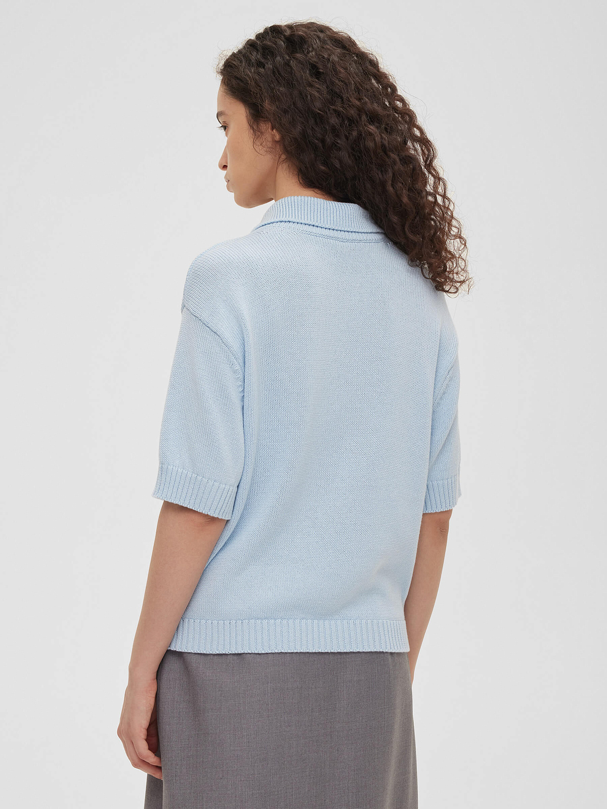 РОЗНИЧНАЯ ЦЕНА 5450руб. Поло с коротким рукавом, отложным воротником и застежкой на пуговицы по переду.