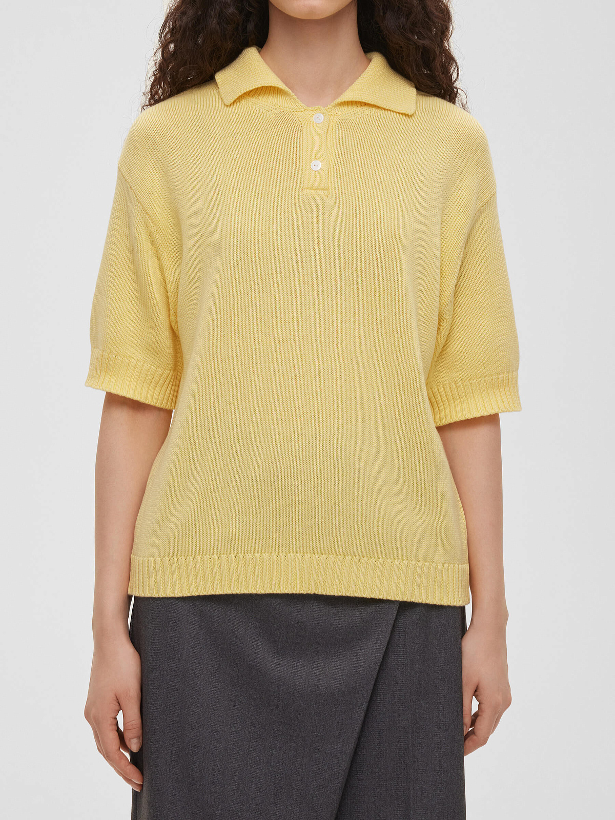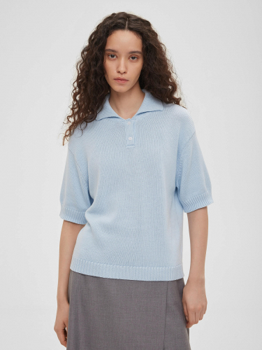 РОЗНИЧНАЯ ЦЕНА 5450руб. Поло с коротким рукавом, отложным воротником и застежкой на пуговицы по переду.