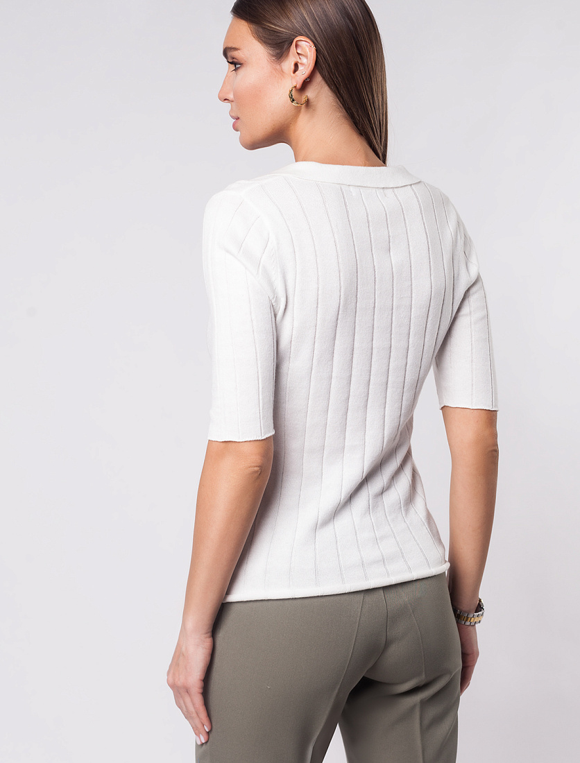 Поло тонкой вязки в широкий рубчик из хлопка с вискозой