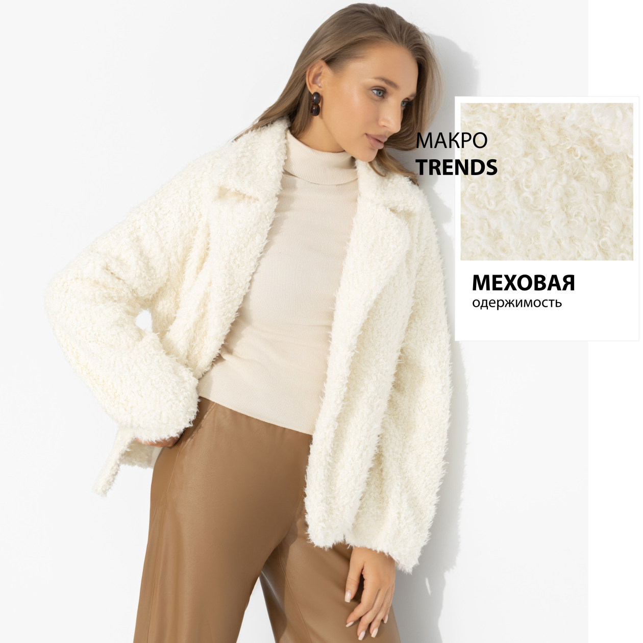 Полупальто из мягкого экомеха, Слишком заметна (белый шоколад, oversize, 42-48, нью)