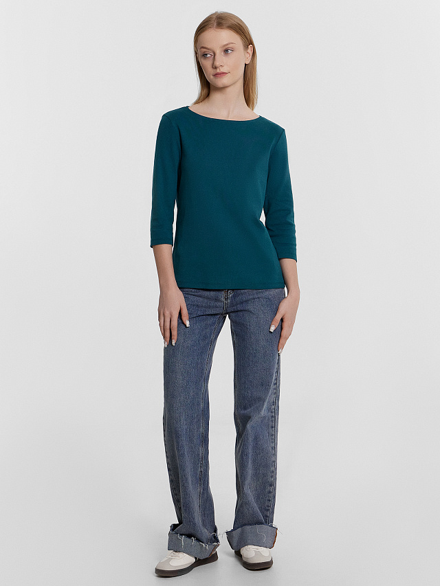 Полуприлегающий темно-зеленый джемпер с укороченными рукавами