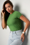Трикотажная свтело-зеленая футболка для женщин отлично подойдёт для образов в уличном стиле.