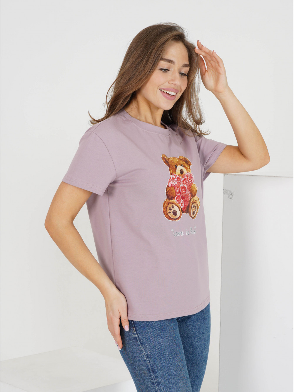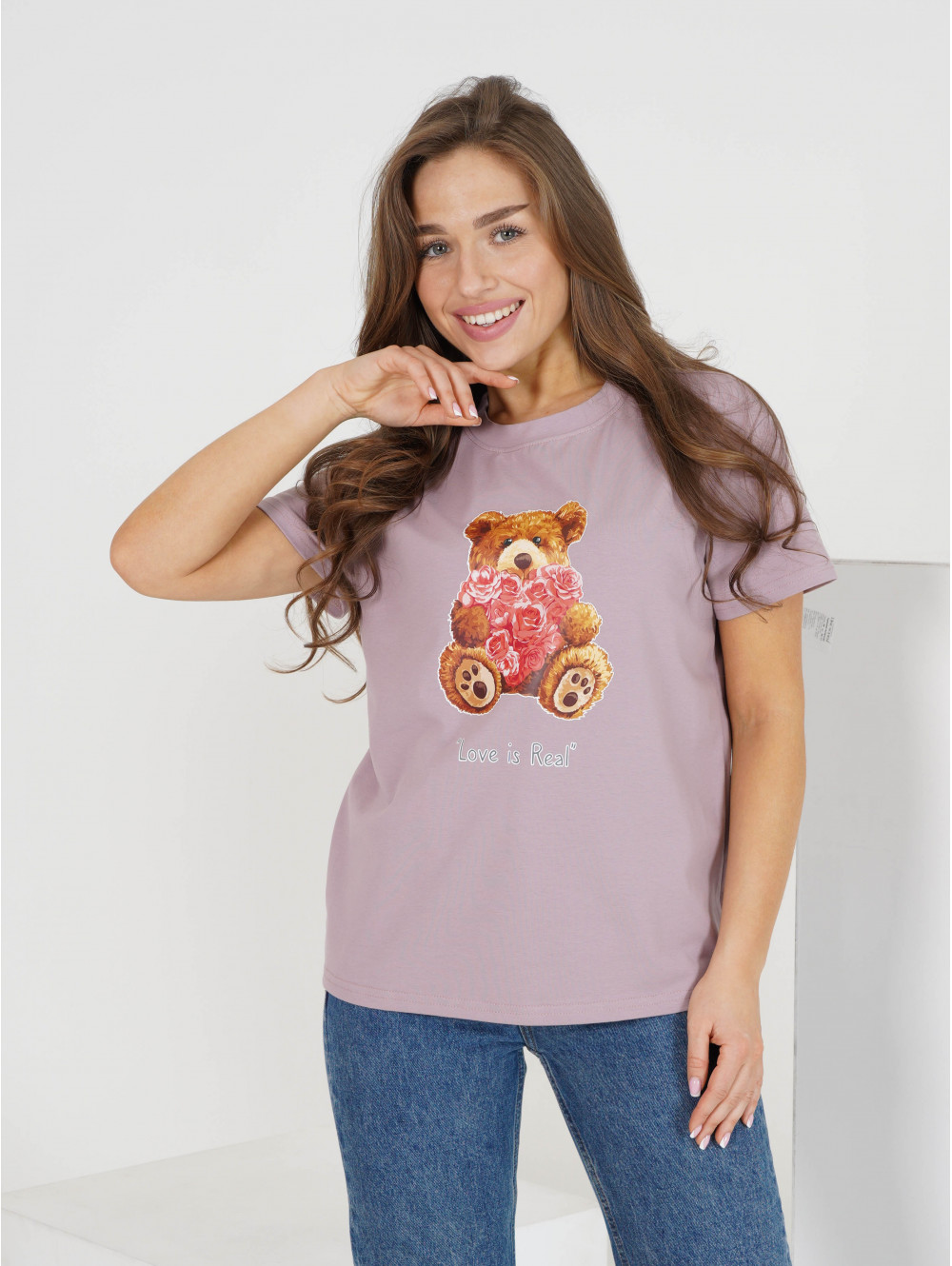 Футболка прямого силуэта со спущенным плечом и коротким втачным рукавом.