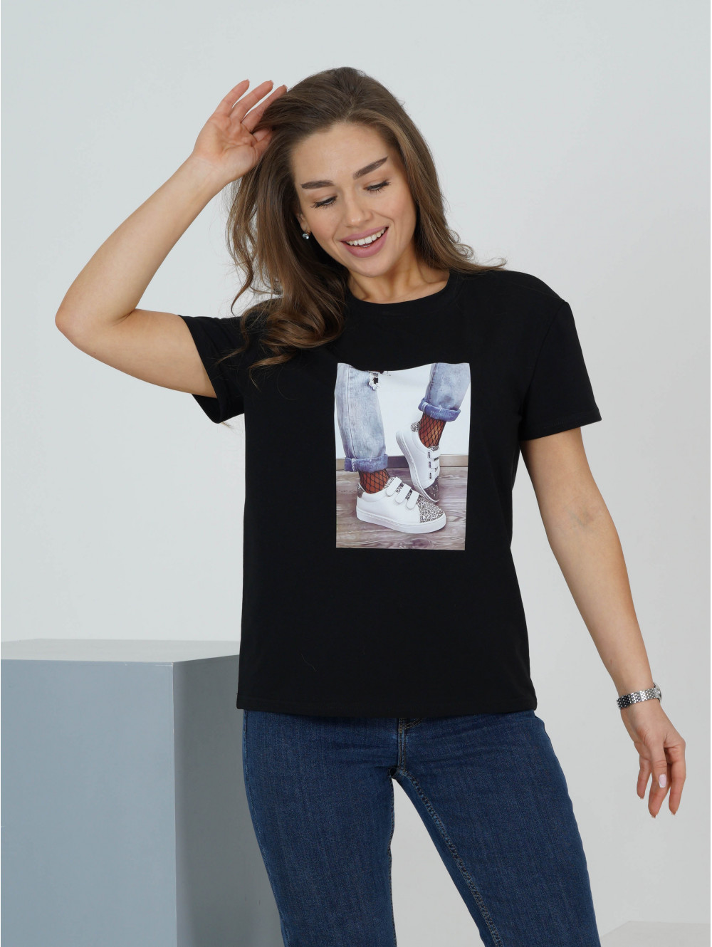 Повседневная женская футболка из шелковистого бамбукового полотна в классической цветовой гамме.