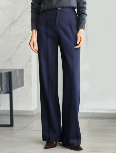 Прямые брюки выполнены из трикотажа джерси. Модель дополнена боковыми карманами и поясом на резинке сзади. Заутюженные стрелки визуально вытягивают силуэт. Изделие хорошо держит форму, отлично тянется и почти не мнется во время использования. Идеальный вариант в офис или в повседневный классический стиль.