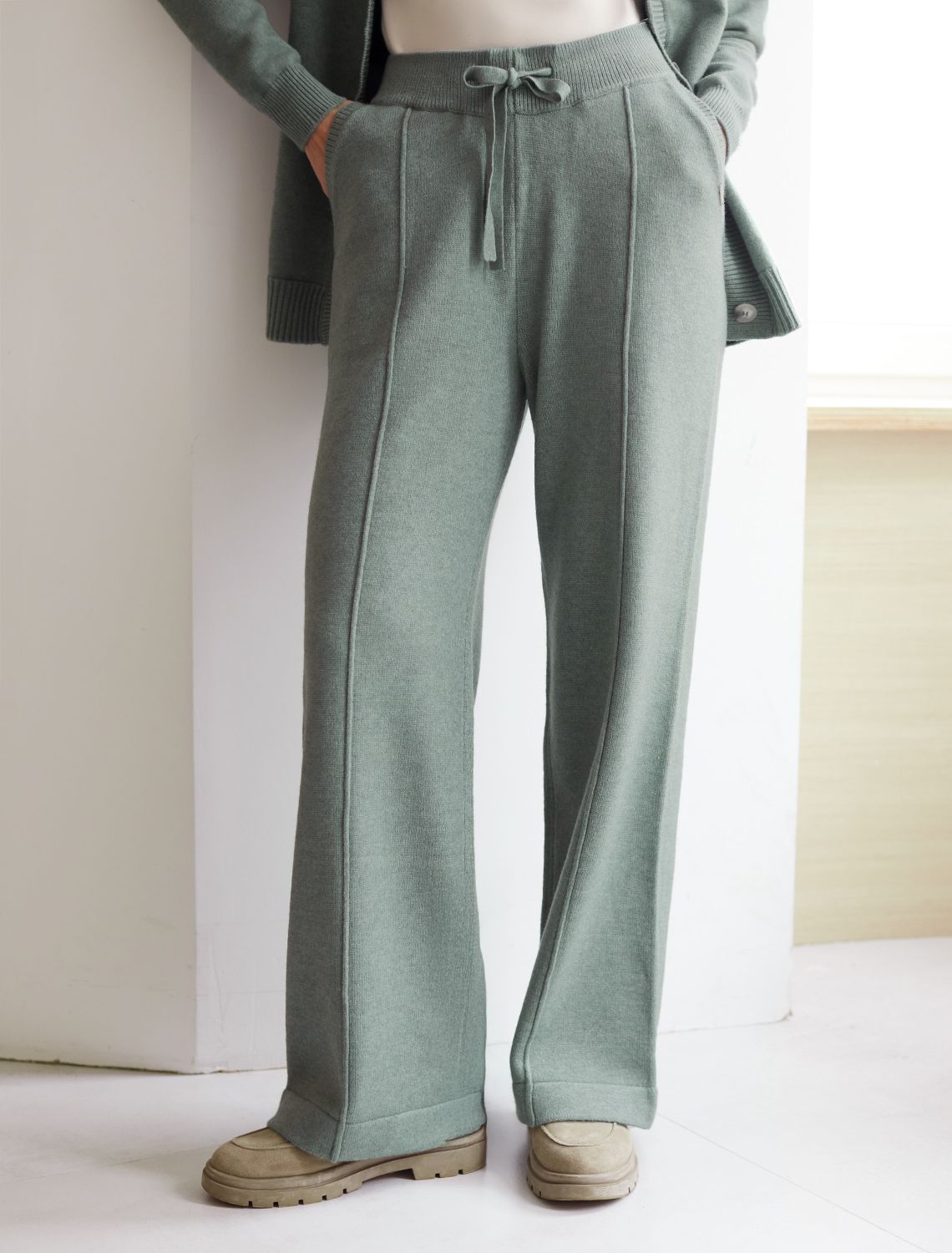 Брюки свободного силуэта выполнены из мягкой пряжи с кашемиром. Вязаный кант вертикально проходящий по всему изделию, визуально стройнит и вытягивает силуэт. Изделие дополнено боковыми карманами и регулирующим шнуром на поясе. Мягкая пряжа очень приятная к телу, поддержит комфорт на протяжении всего дня, при этом не перегревая. Сочетается в костюме с D31.141, D31.147, D31.148, D31.149, D34.202, D34.203, D34.205, D34.206, D37.017, D37.018, D39.358, D39.359, D39.360