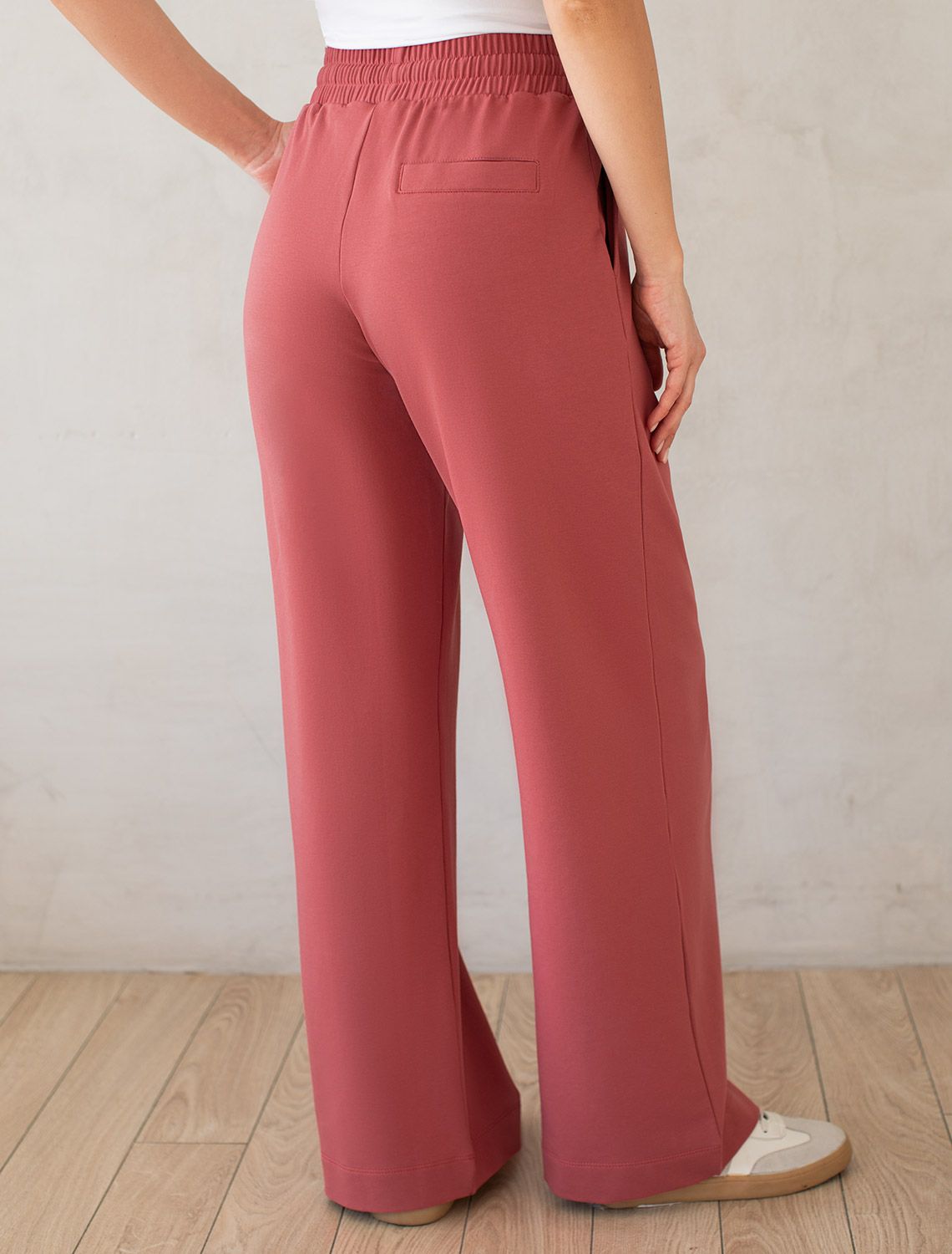 Брюки выполнены из футера двухнитки с эластаном. Модель прямого кроя дополнена боковыми карманами и одним задним карманом. Пояс выполнен из эластичного трикотажа в рубчик. В пояс вставлен плоский хлопковый шнур в тон изделия с золотистыми наконечниками. Изделие дополнено металлическим логотипом бренда. Сочетается в костюме с жакетом D49.078, джемпером D49.079, D49.080 и футболкой D49.081