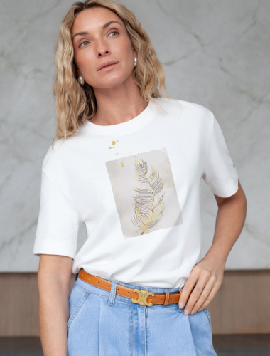 Брюки выполнены из футера двухнитки с эластаном. Модель прямого кроя дополнена боковыми карманами и одним задним карманом. Пояс выполнен из эластичного трикотажа в рубчик. В пояс вставлен плоский хлопковый шнур в тон изделия с серебристыми наконечниками. Изделие дополнено металлическим логотипом бренда. Сочетается в костюме с жакетом D49.078, джемпером D49.079, D49.080 и футболкой D49.081