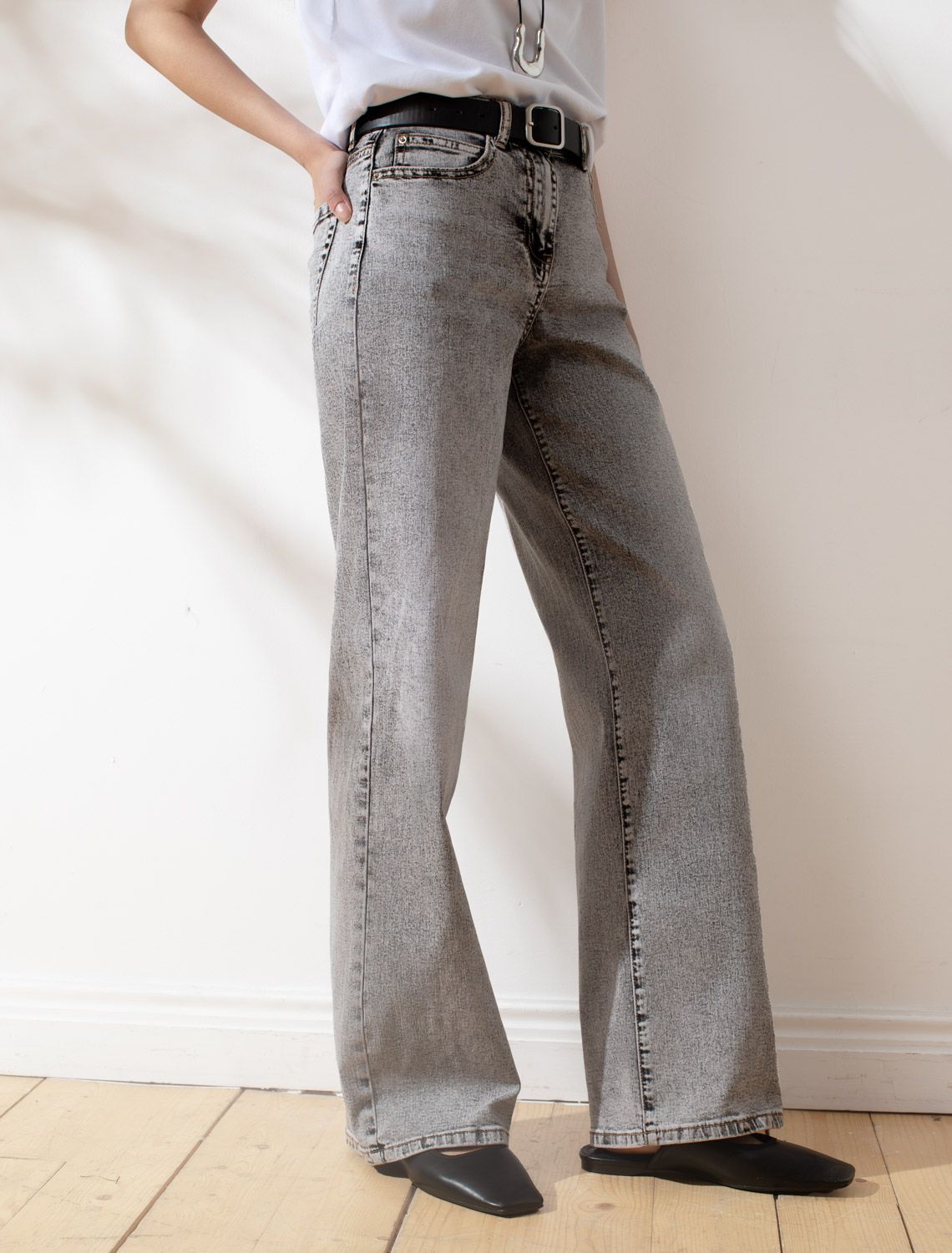 Стильные прямые джинсы серого цвета цвета прямого кроя выполнены из эластичного денима плотностью 10,3 OZ, что делает их особенно удобными для повседневной носки. При производстве джинсов применена технология «вареные швы», которая основана на локальном вымывании красителя из плотных участков ткани — сгибов и швов — за счет механического воздействия во время промышленной стирки. Стоун вошинг - энзимная стирка с камнями. Камни воздействуют на ткань, выбивая краску на швах, создавая контрастные мраморные потертости и мягкость. Легкая декоративная стирка добавляет интересный акцент и подчеркивает современный дизайн. Джинсы правильного кроя визуально вытягивают силуэт, благодаря эластану в составе аккуратно садятся на любую фигуру, подчеркивая достоинства и обеспечивают максимальный комфорт в течение дня, не сковывая движения. Широкая размерная линейка подходит для разных типов фигур: свободные джинсы комфортны как для обладательниц пышных форм, так и для худеньких. Джинсы идеально держат форму даже при активном движении и не вытягиваются после долгой носки. Качественная надежная фурнитура делает эти джинсы премиальными. Прямой крой добавляет актуальности — такой тренд отлично сочетается как с обувью на каблуке, так и на плоском ходу. Благодаря универсальному дизайну джинсы легко комбинируются с разными элементами гардероба.